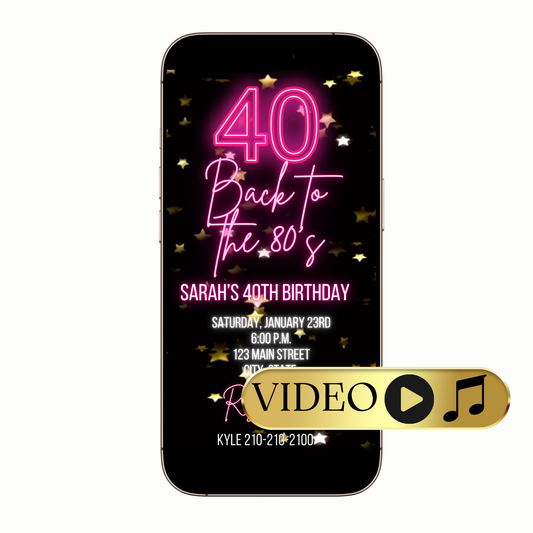40th Birthday Video Invitation | Pink 40th Digital Evite | Editable Online Template