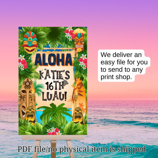 Hawiian Luau Welcome Sign - Tropical Island Poster - Printable Beach party entrance Sign