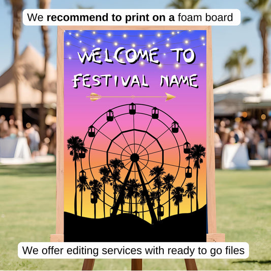 Digital Music Festival Party Sign Ferris Wheel Printable Coachella Welcome Sign