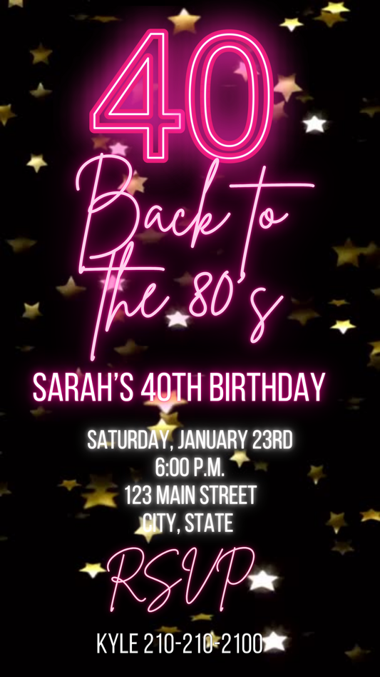 40th Birthday Neon Pink Video Invitation | Digital Glow Party Invite | Editable Canva Template