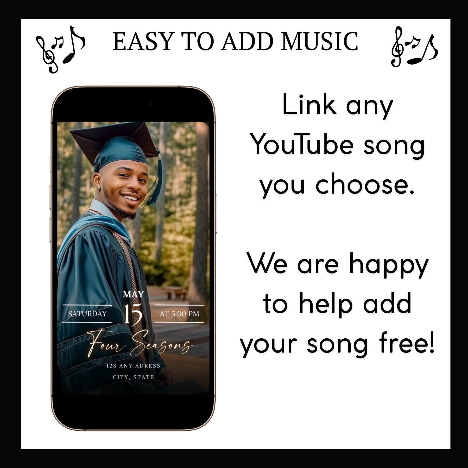 Laden Sie stilvoll ein mit unserer Videoeinladung zur Abschlussfeier – eine hochwertige digitale Videoeinladung, die Ihre Gäste begeistern und perfekt zu Ihrem Veranstaltungsthema passen wird. Diese animierte MP4-Datei lässt sich einfach personalisieren und mühelos teilen.