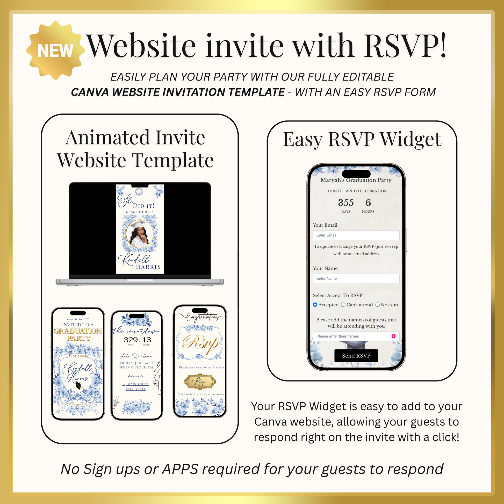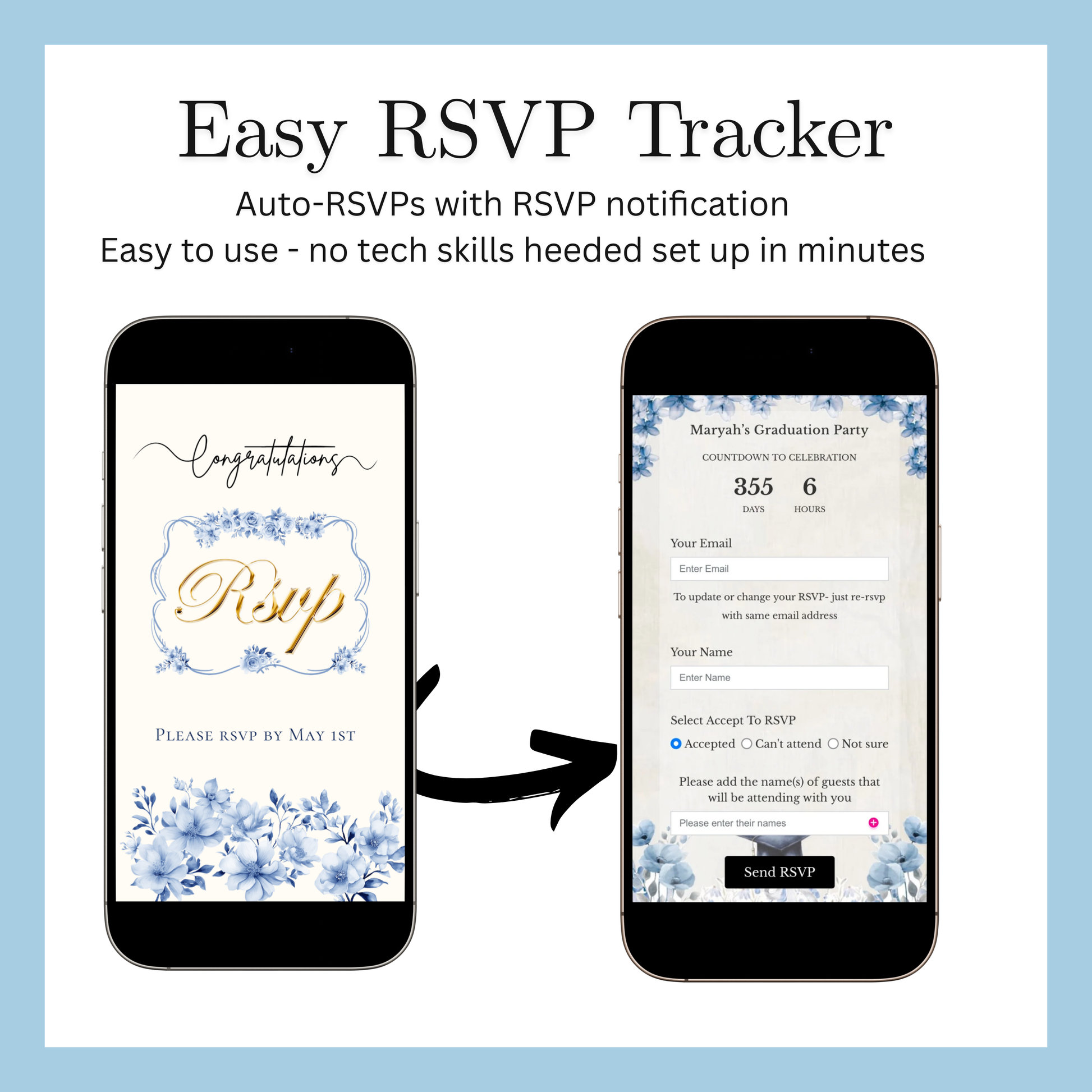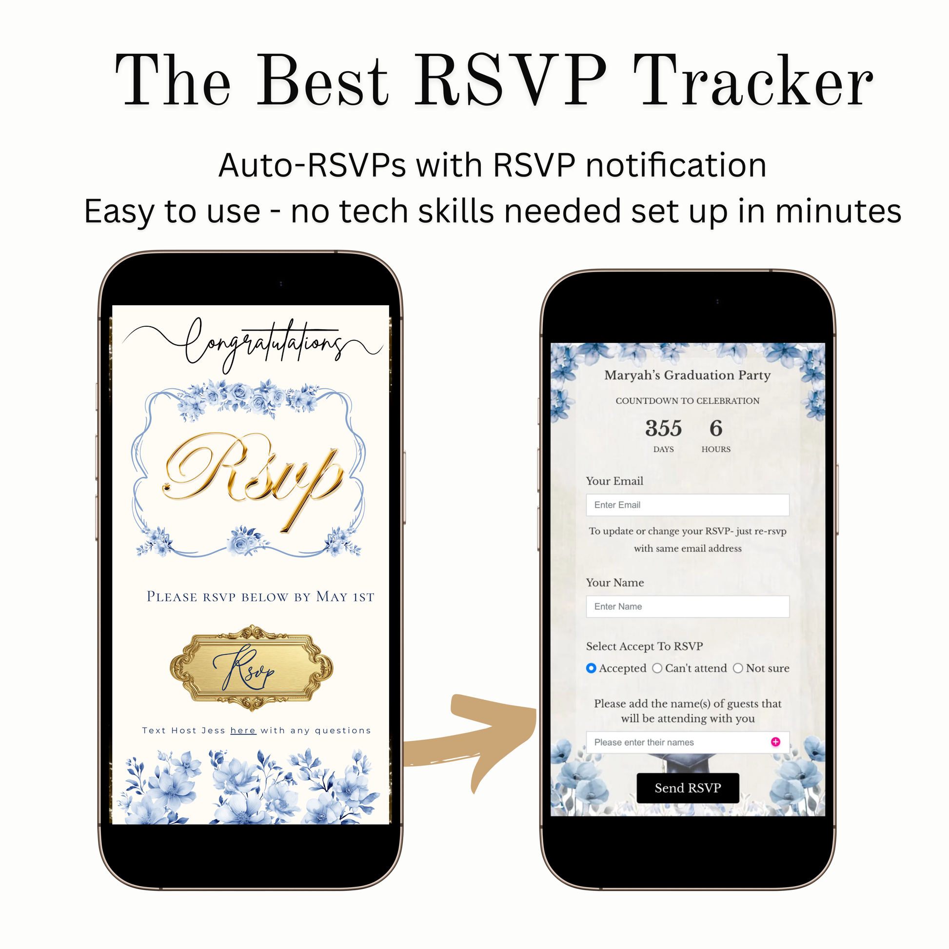 • Integriertes RSVP-System + sofortige Gästeantworten
