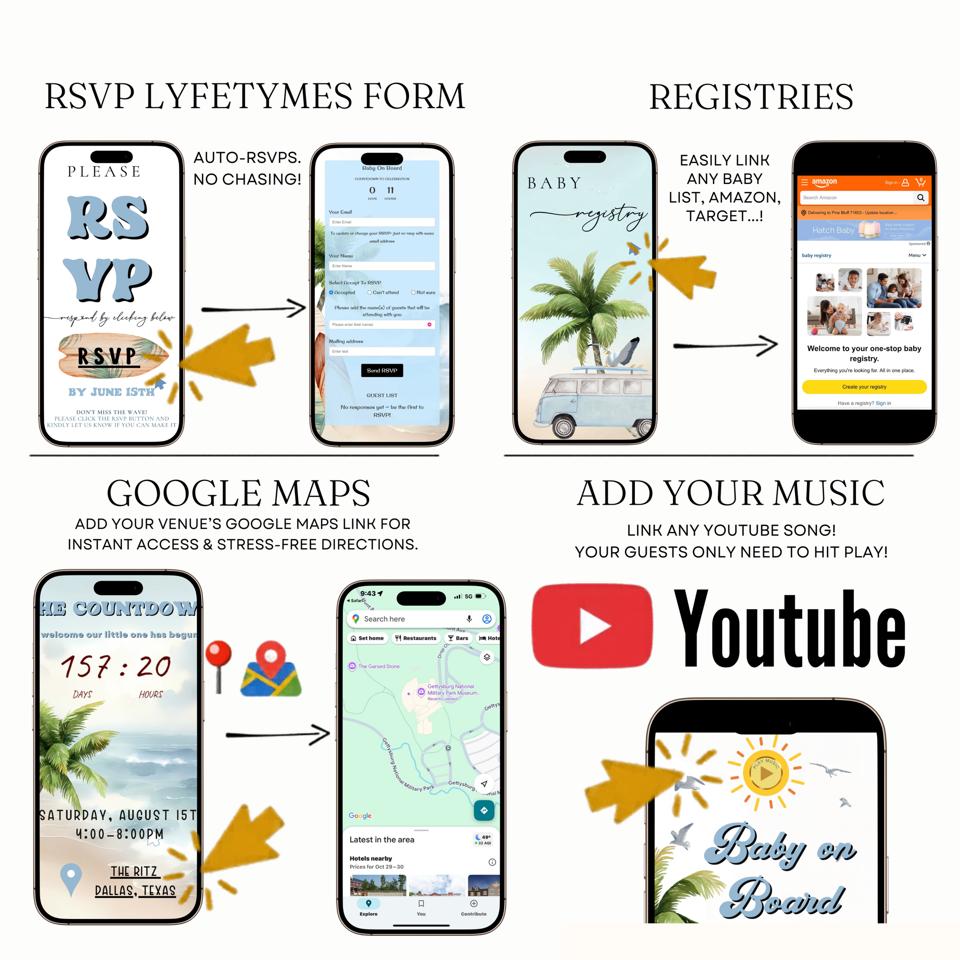 • Can guests RSVP directly? → Yes, instantly.