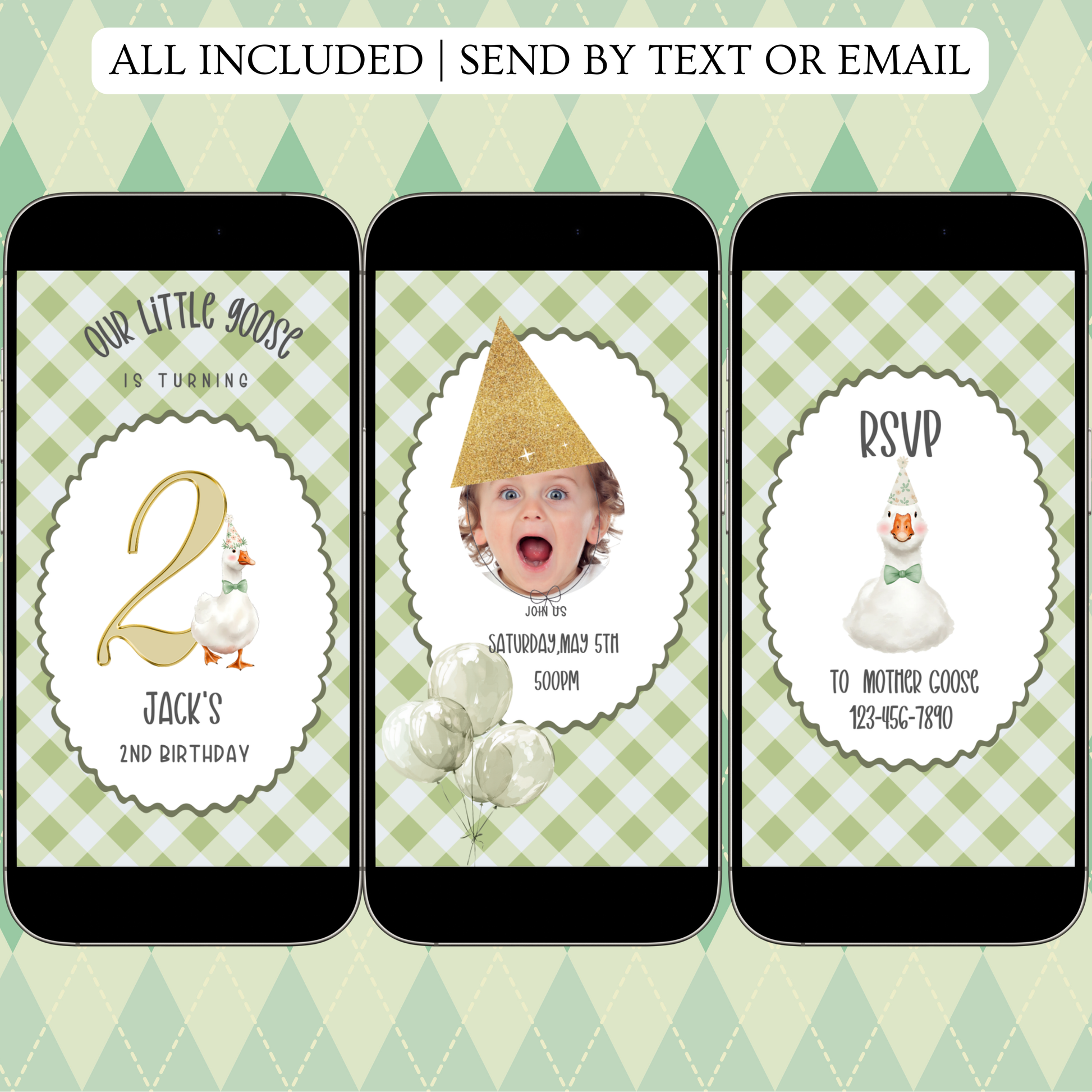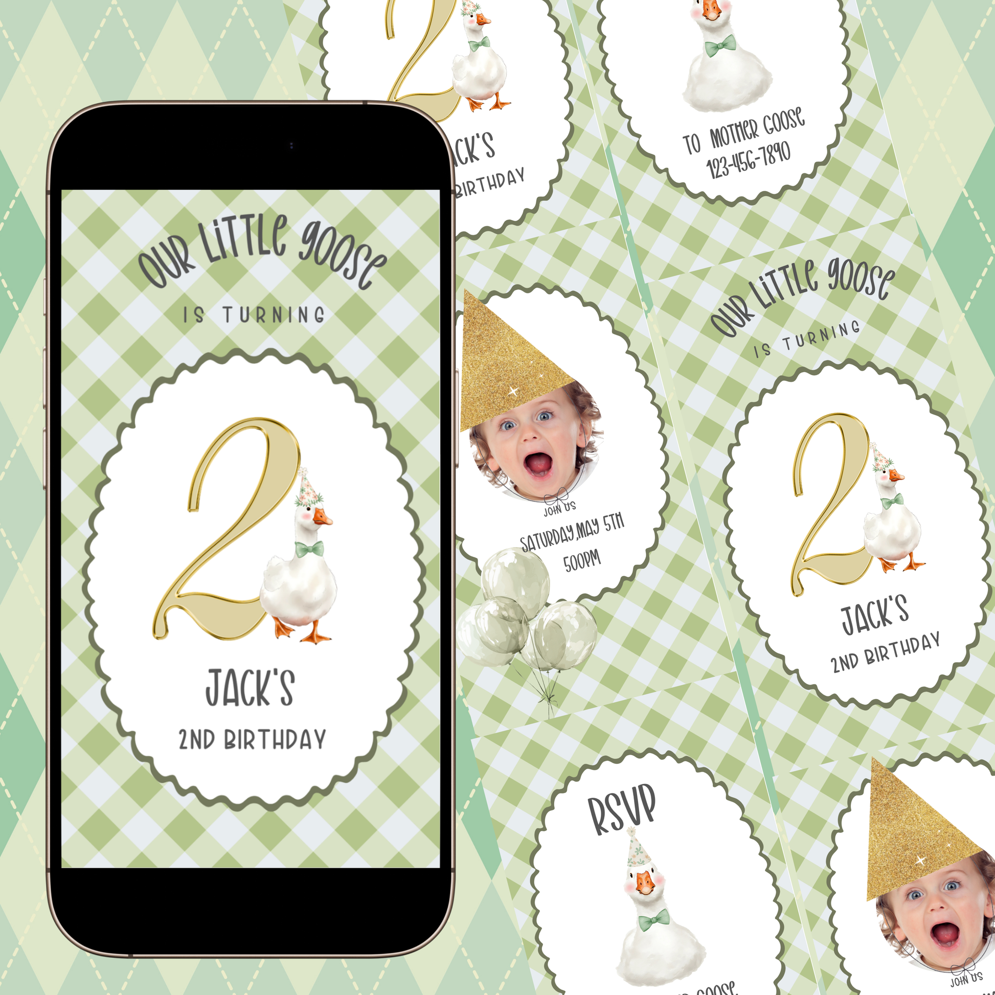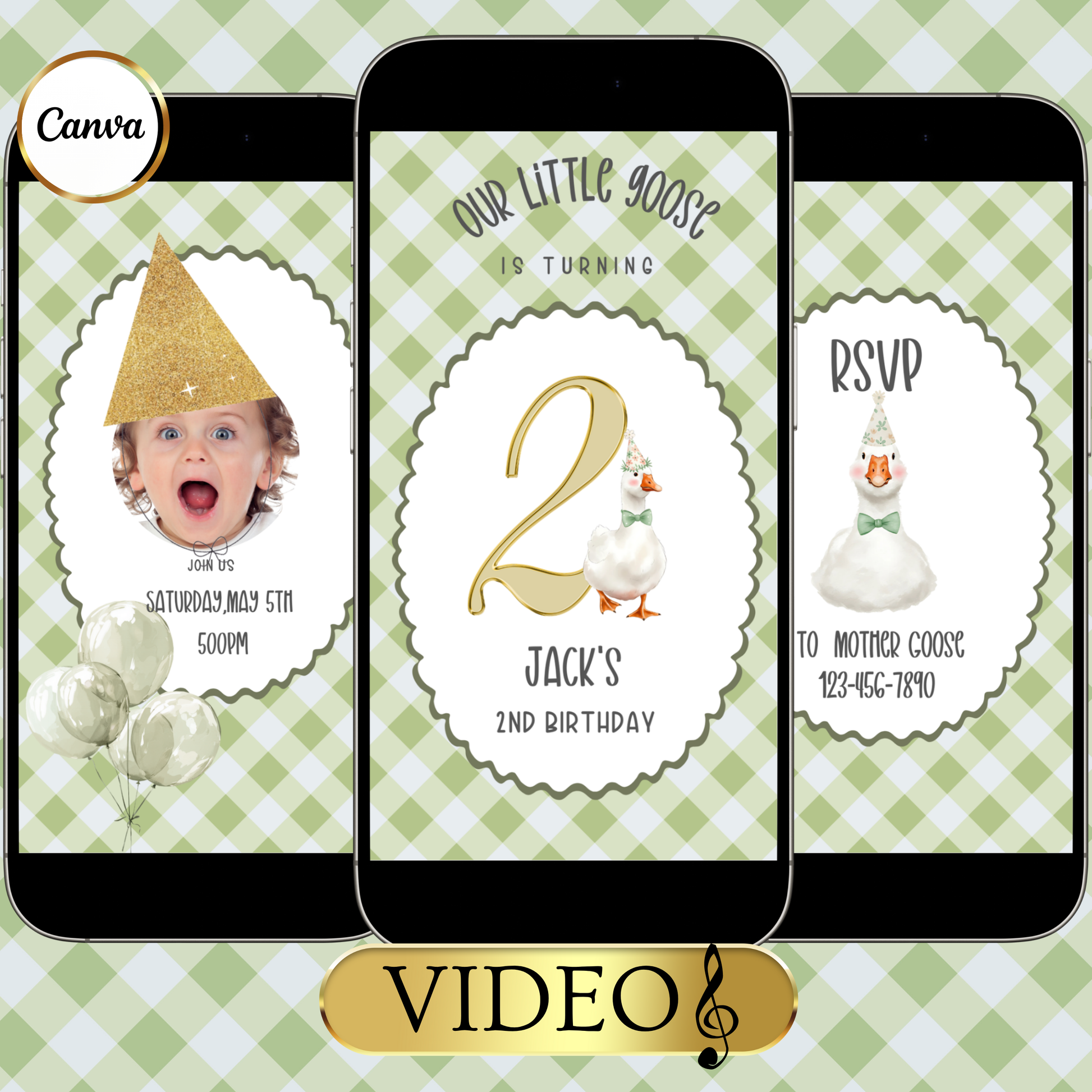 Videoeinladung „Blaue Gans“ | Digitale Einladung zum 1. Geburtstag für Jungen | Online-Vorlage zum Bearbeiten