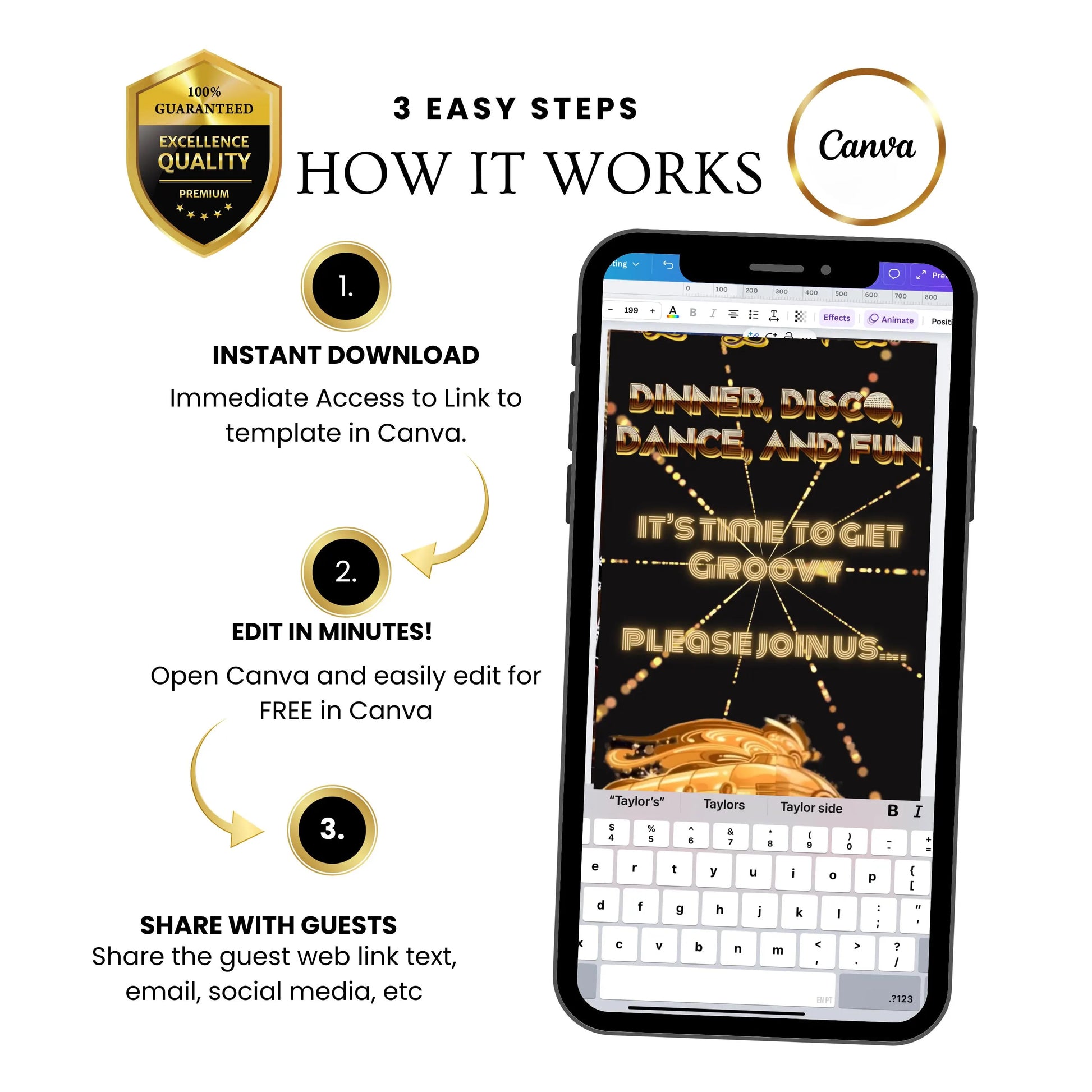✔ Vollständig editierbare, personalisierte Einladung zur Disco-Feier mit Ihren Angaben