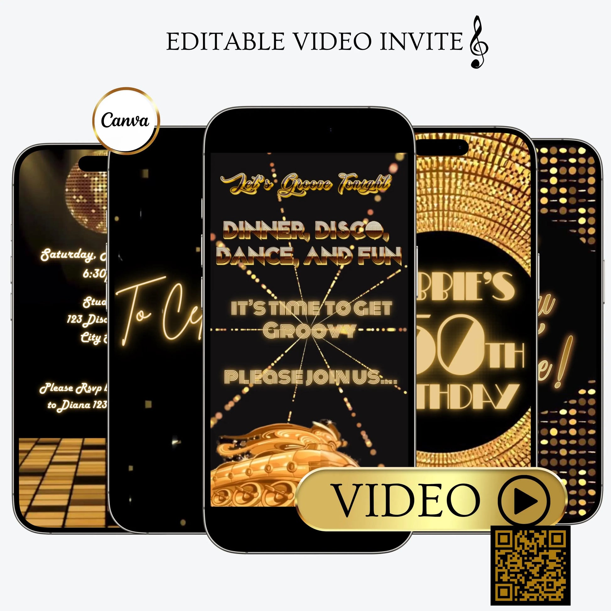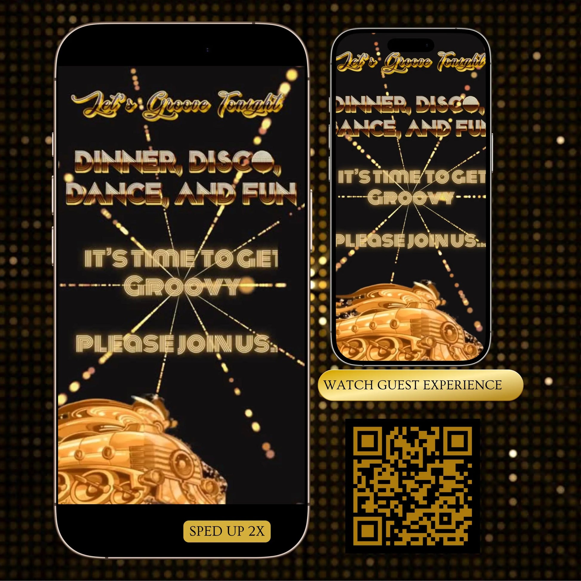 Goldene Disco-Videoeinladung | Disco-Ball-Studio-54-Geburtstagseinladung