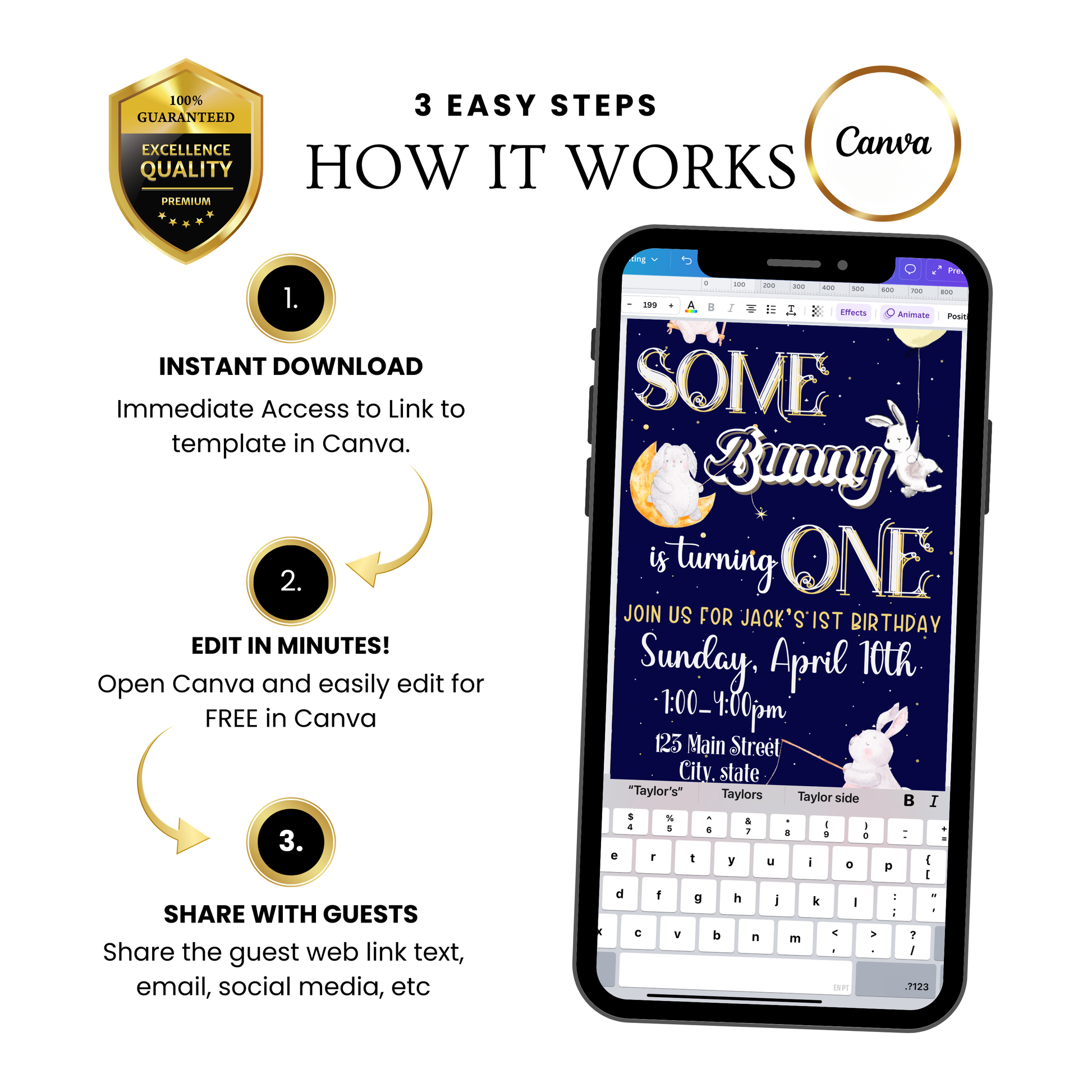 Digitale Ostereinladung, animierte Einladung zum Ostergeburtstag, digitale Vorlage „Ein Hase liebt dich“, digitale Einladung zur Babyparty mit Hasenmotiv, Canva-Vorlage