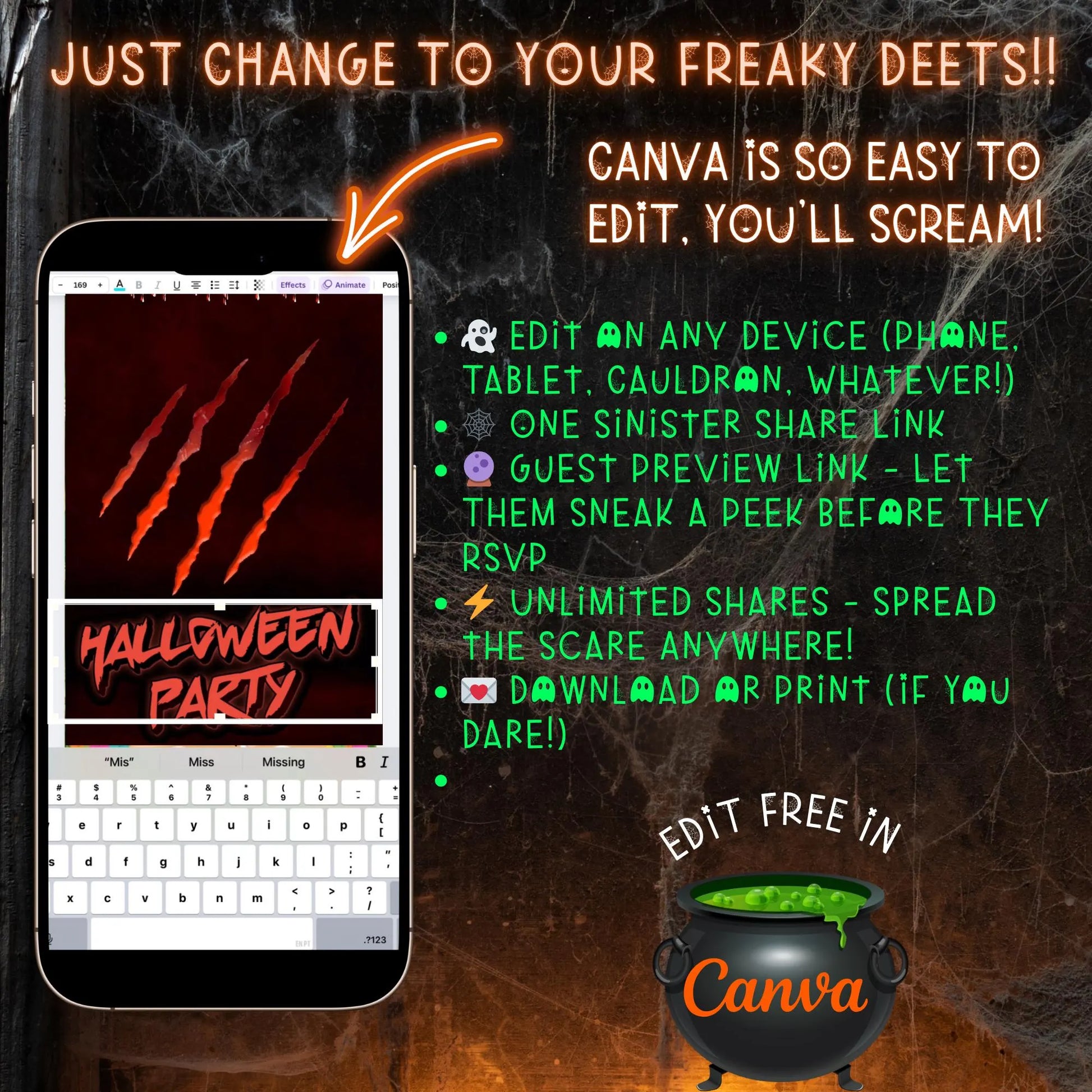 Halloween-Videoeinladung | Animierte digitale Halloween-Einladung | Bearbeitbare Canva-Einladungsvorlage