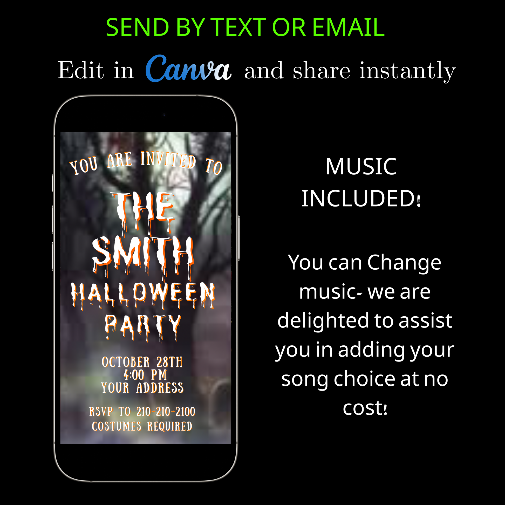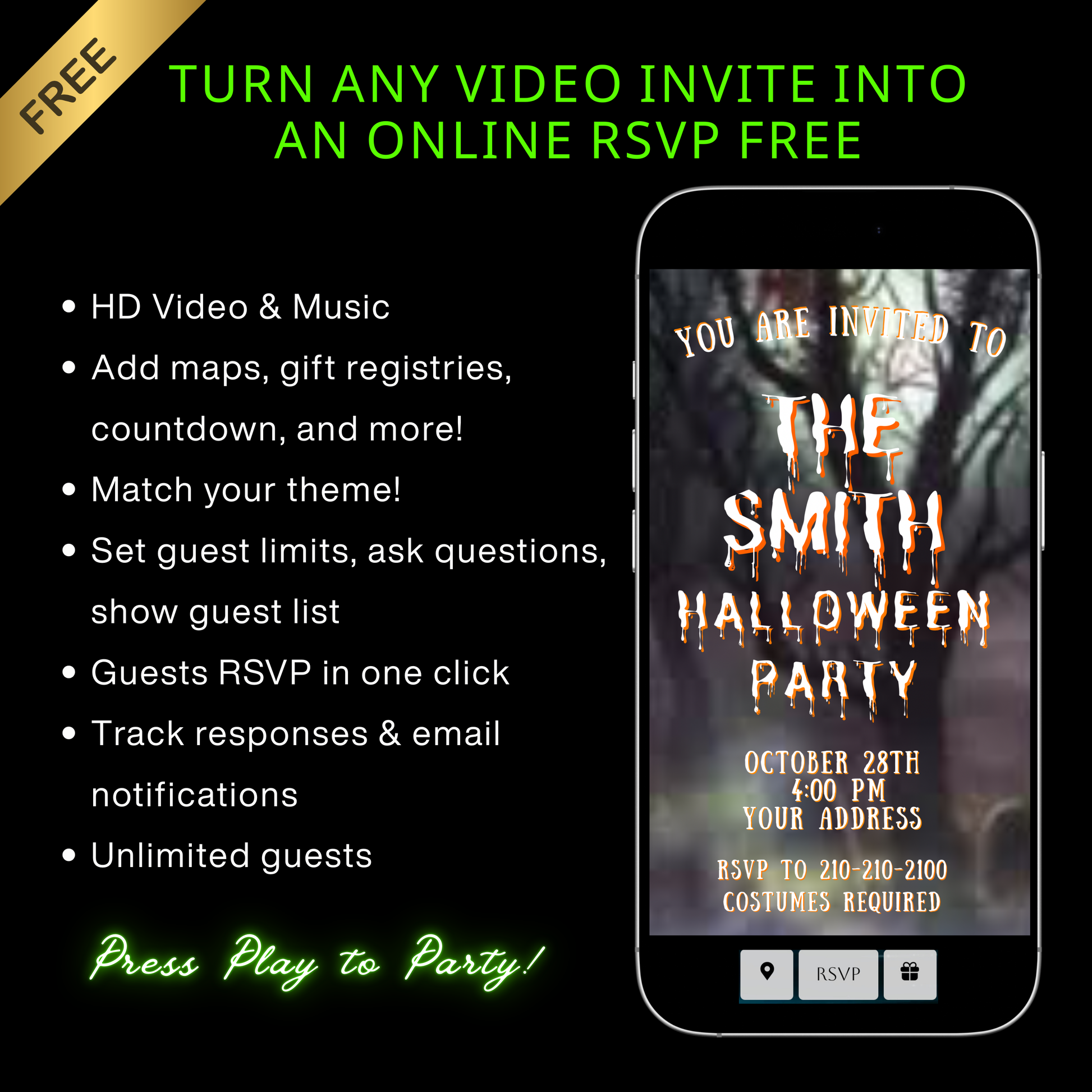 Halloween-Videoeinladung, animierte Einladung zum Spukwald, bearbeitbare mobile Halloween-Party-Einladung