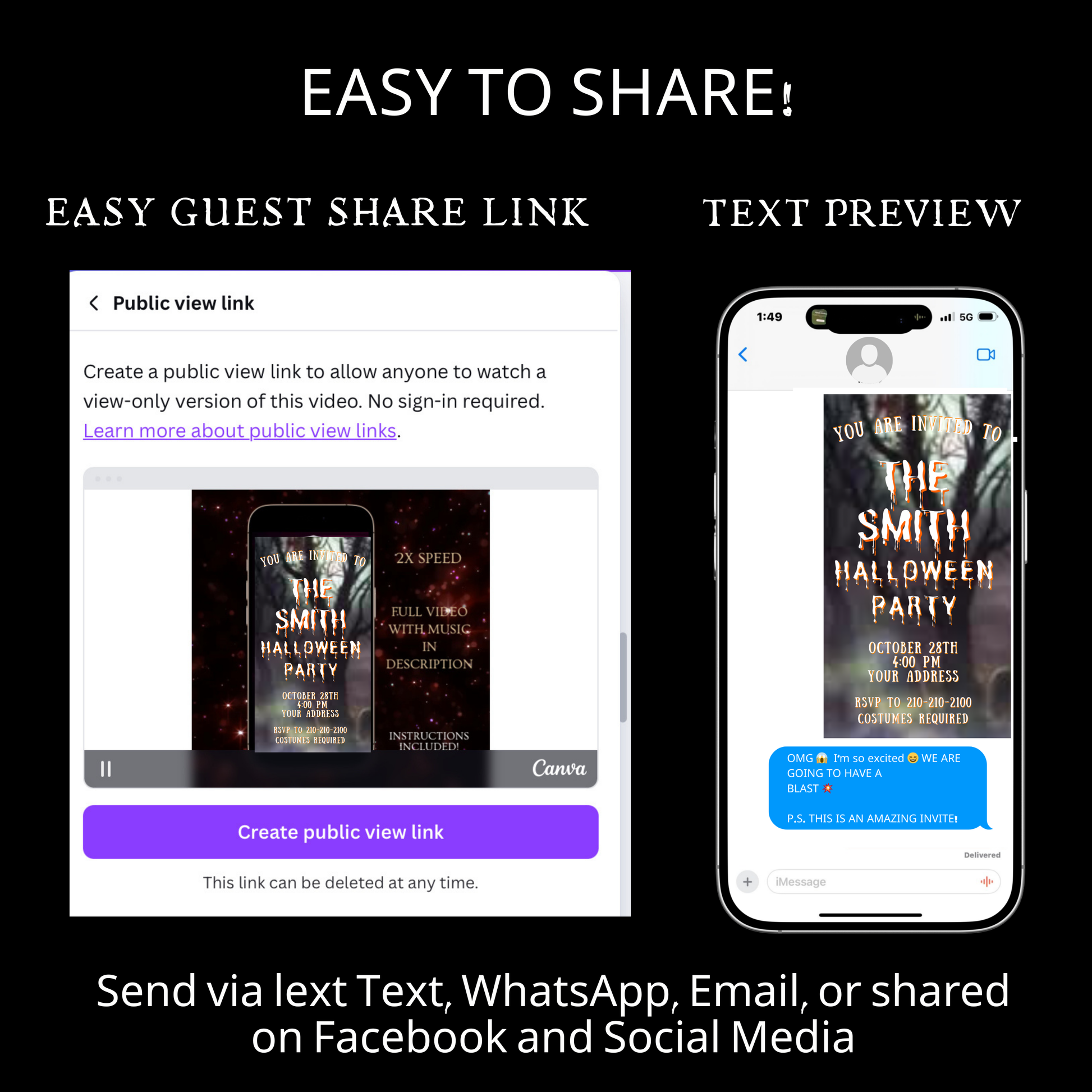 🎬 Mobile-freundliche Videoeinladung – Sofort per SMS, E-Mail, WhatsApp oder über soziale Medien versenden.