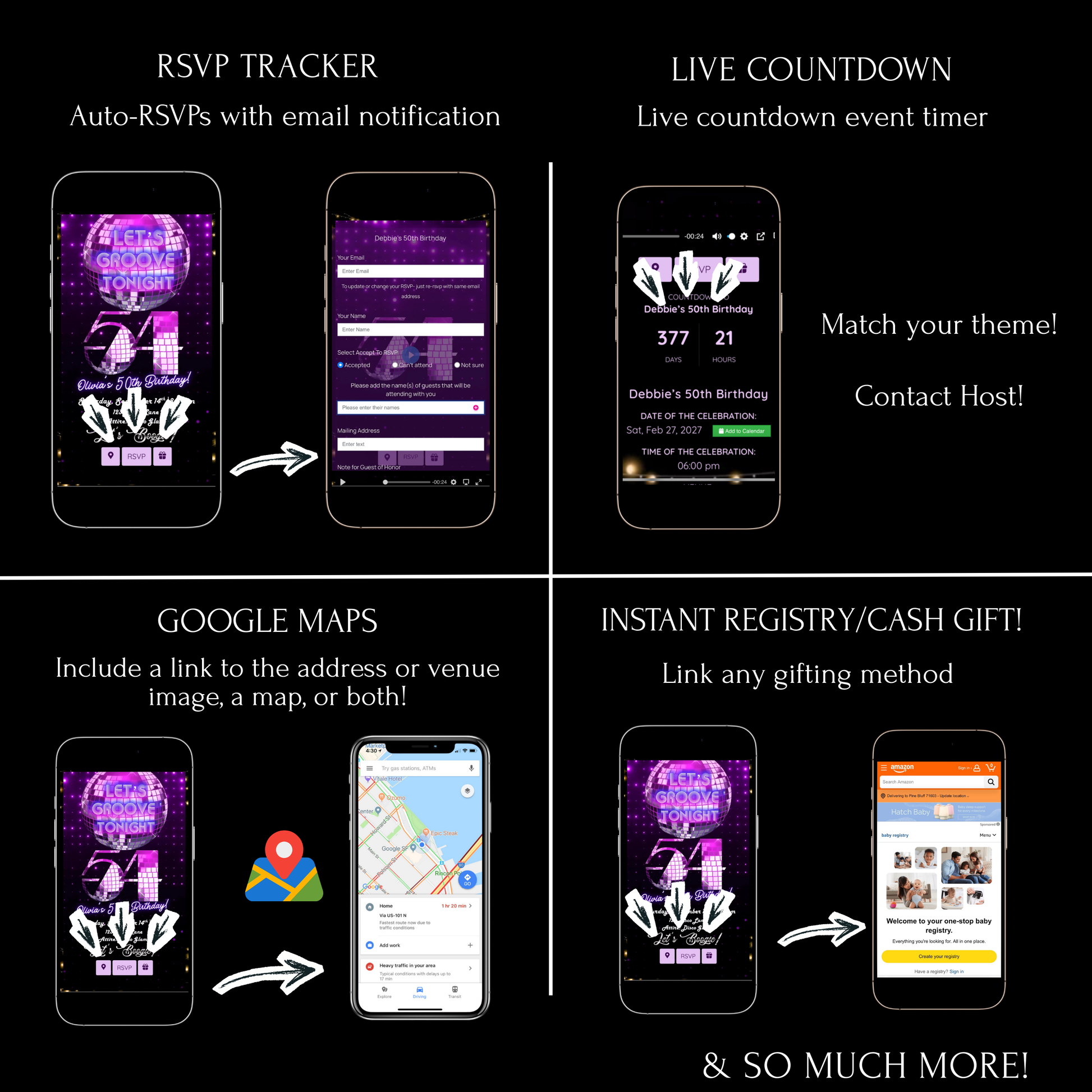 🎬 Mobile-freundliche Videoeinladung – Sofort per SMS, E-Mail, WhatsApp oder über soziale Medien versenden.