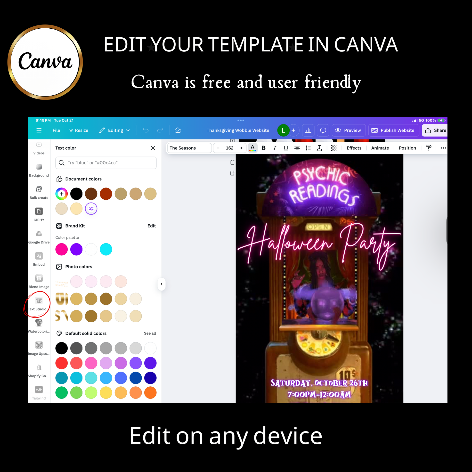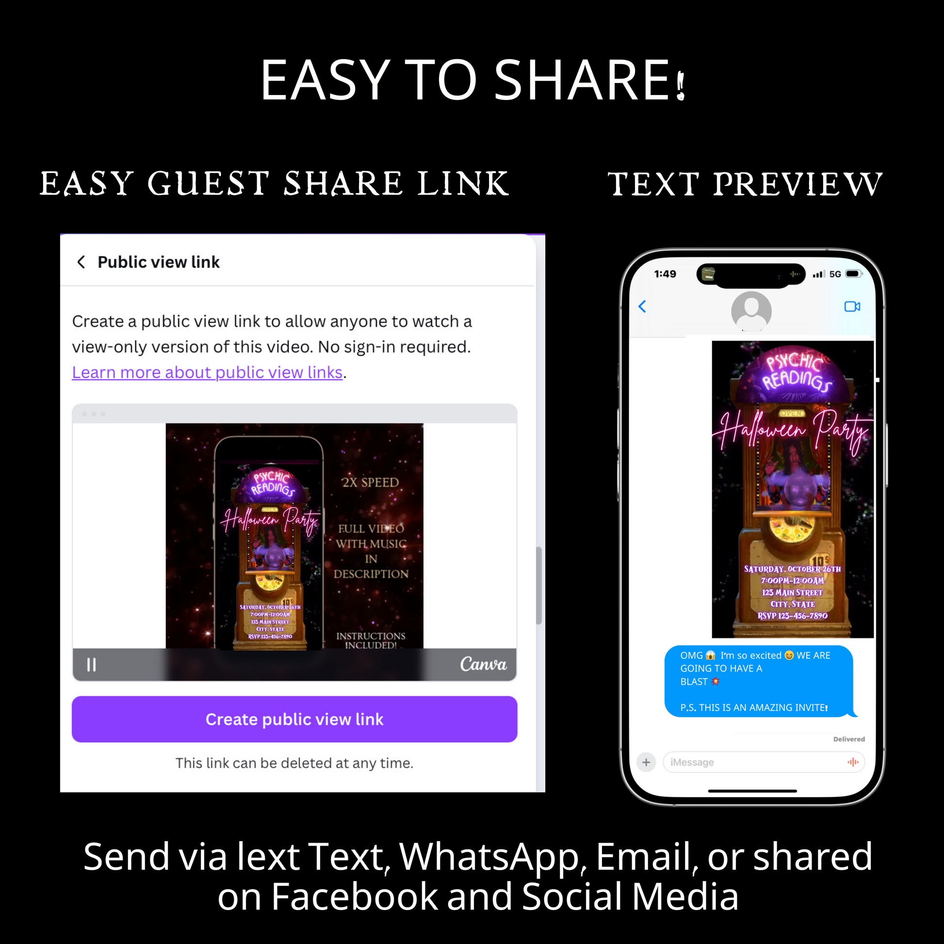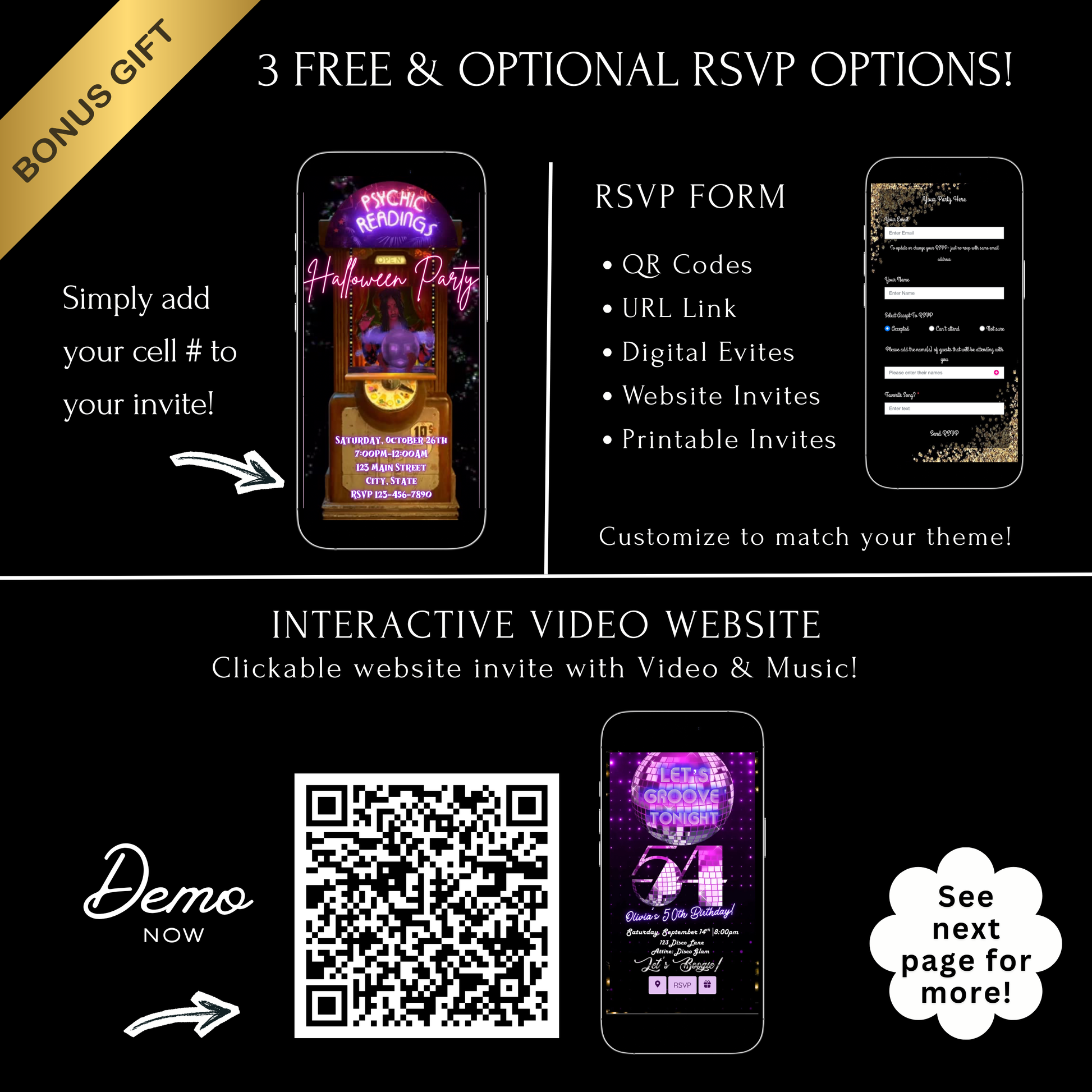 Halloween-Videoeinladung, animierte Einladung mit Wahrsager-Motiv, bearbeitbare mobile Einladung zur Halloween-Party