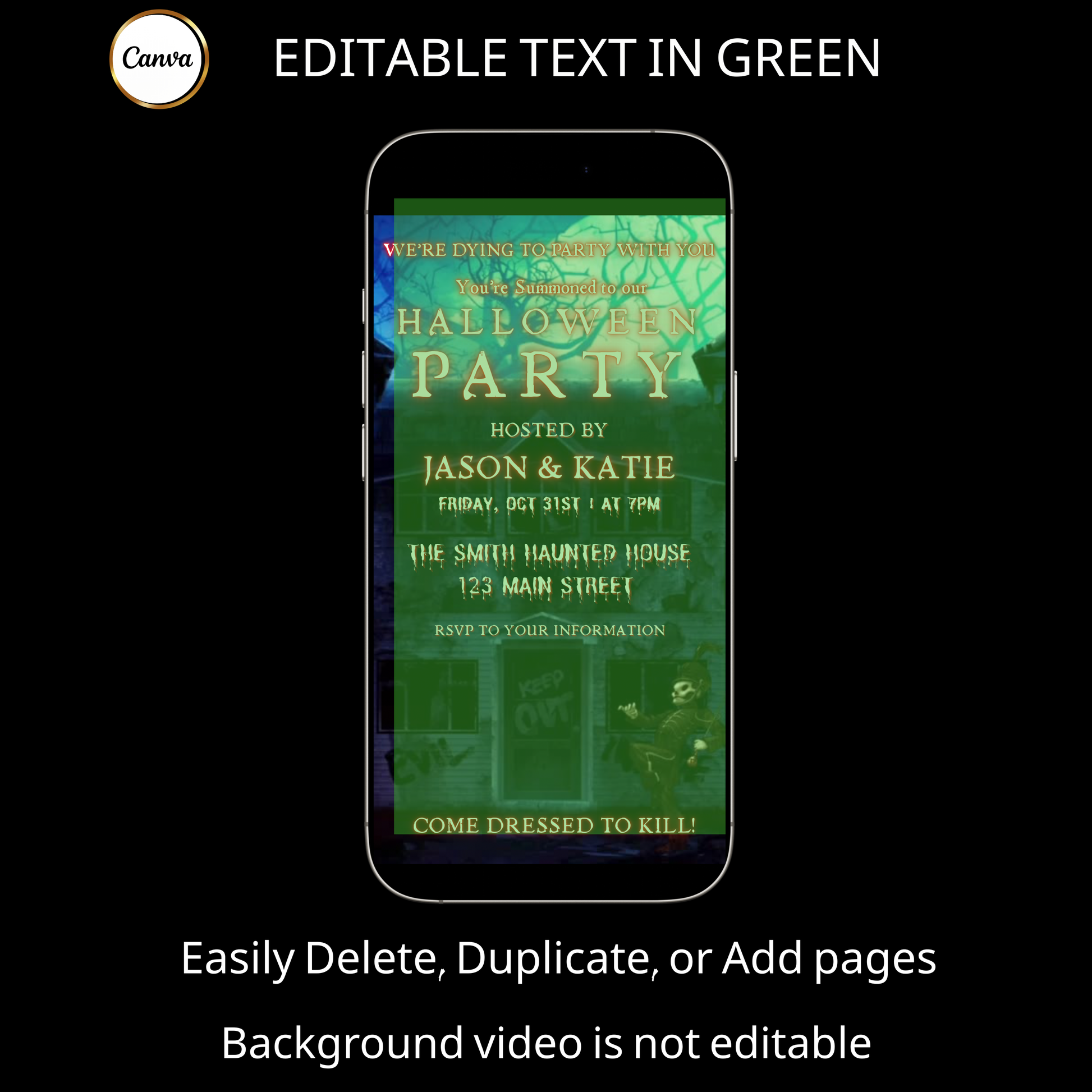 Halloween-Videoeinladung, animierte Halloween-Einladung für März, bearbeitbare mobile Halloween-Party-Einladung