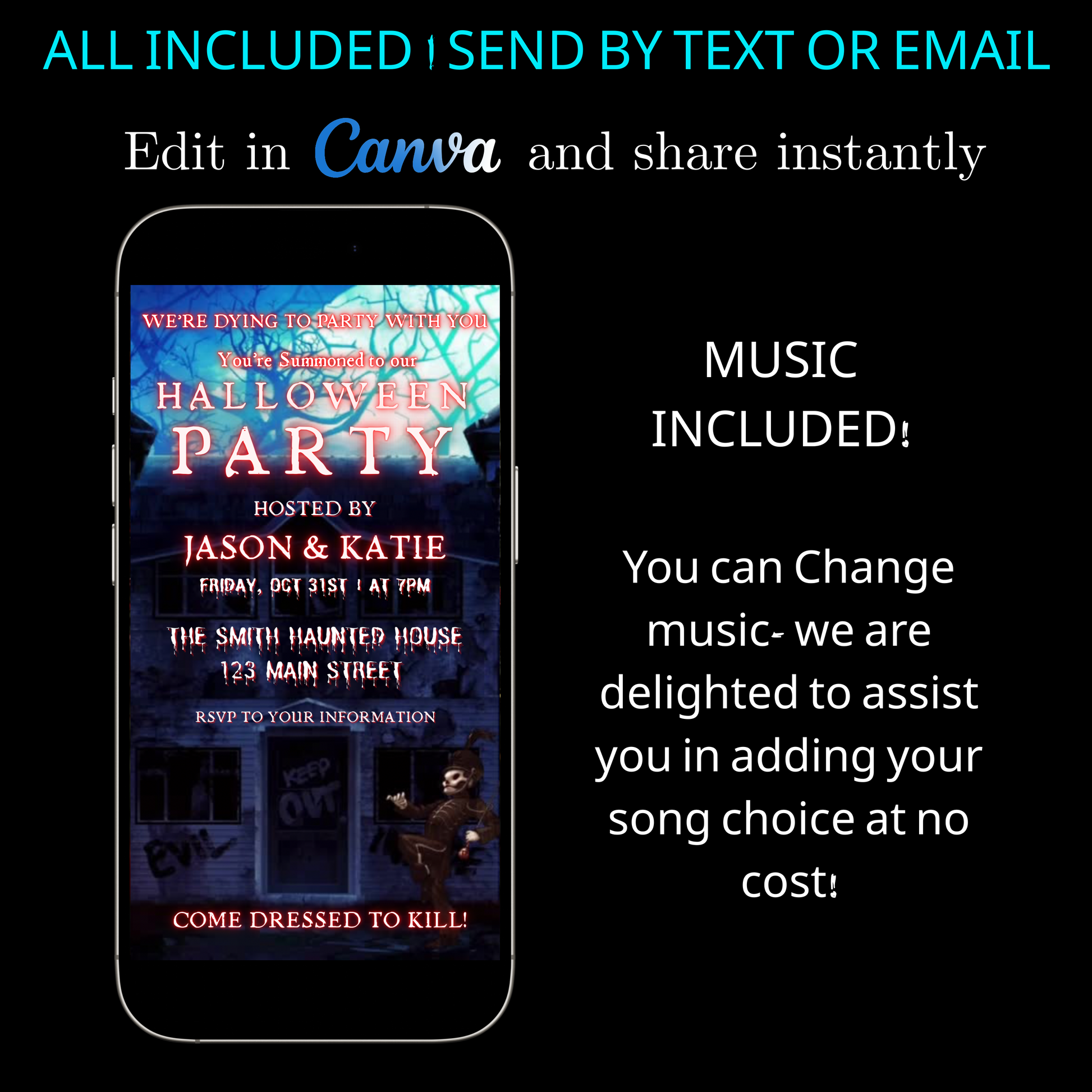 🕸 Halloween-Magie – Halloween-Videohintergrund, gruselige Schriftart, animierte Elemente und unheimliche Musik für eine lustige Halloween-Einladung, die Ihre Gäste lieben werden .