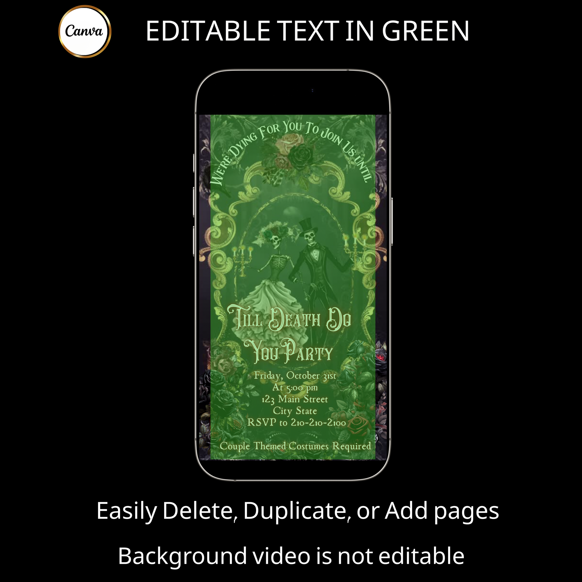Halloween-Videoeinladung, animierte Halloween-Hochzeitseinladung, bearbeitbare mobile Halloween-Partyeinladung