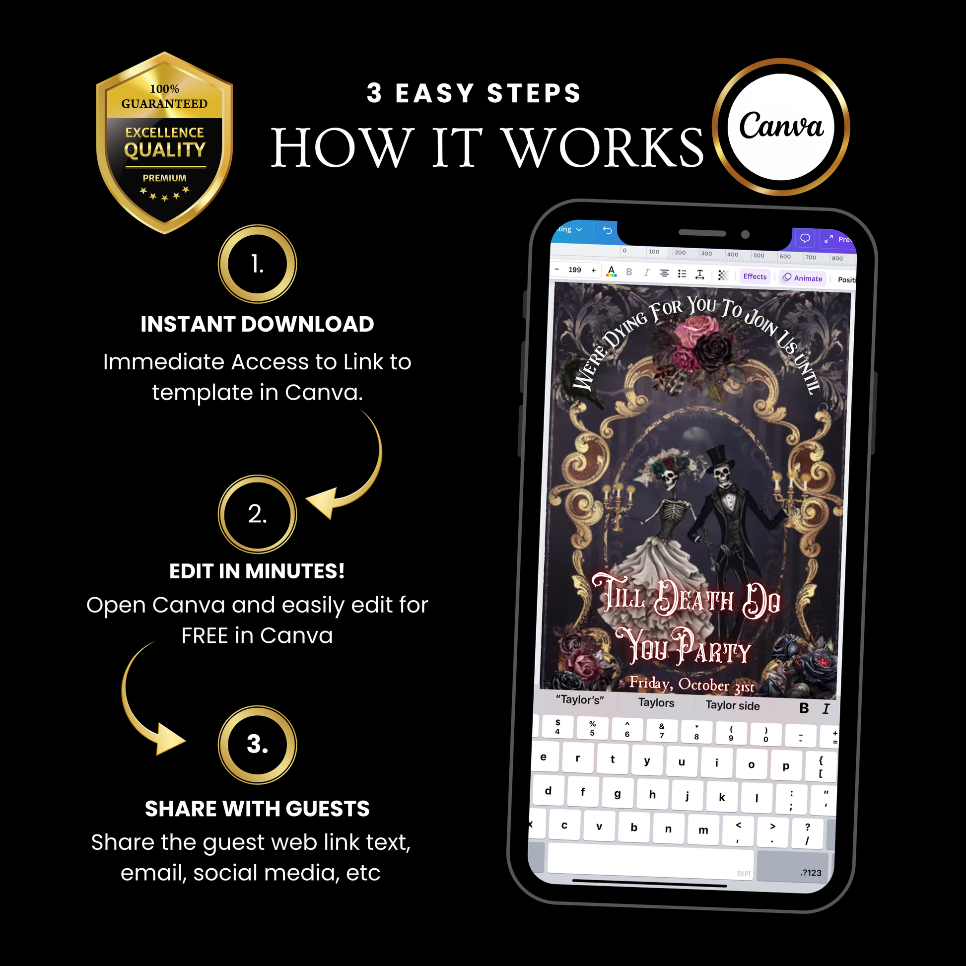 🎨 In Canva bearbeitbar – Namen, Daten, Uhrzeiten und Orte lassen sich ganz einfach anpassen.