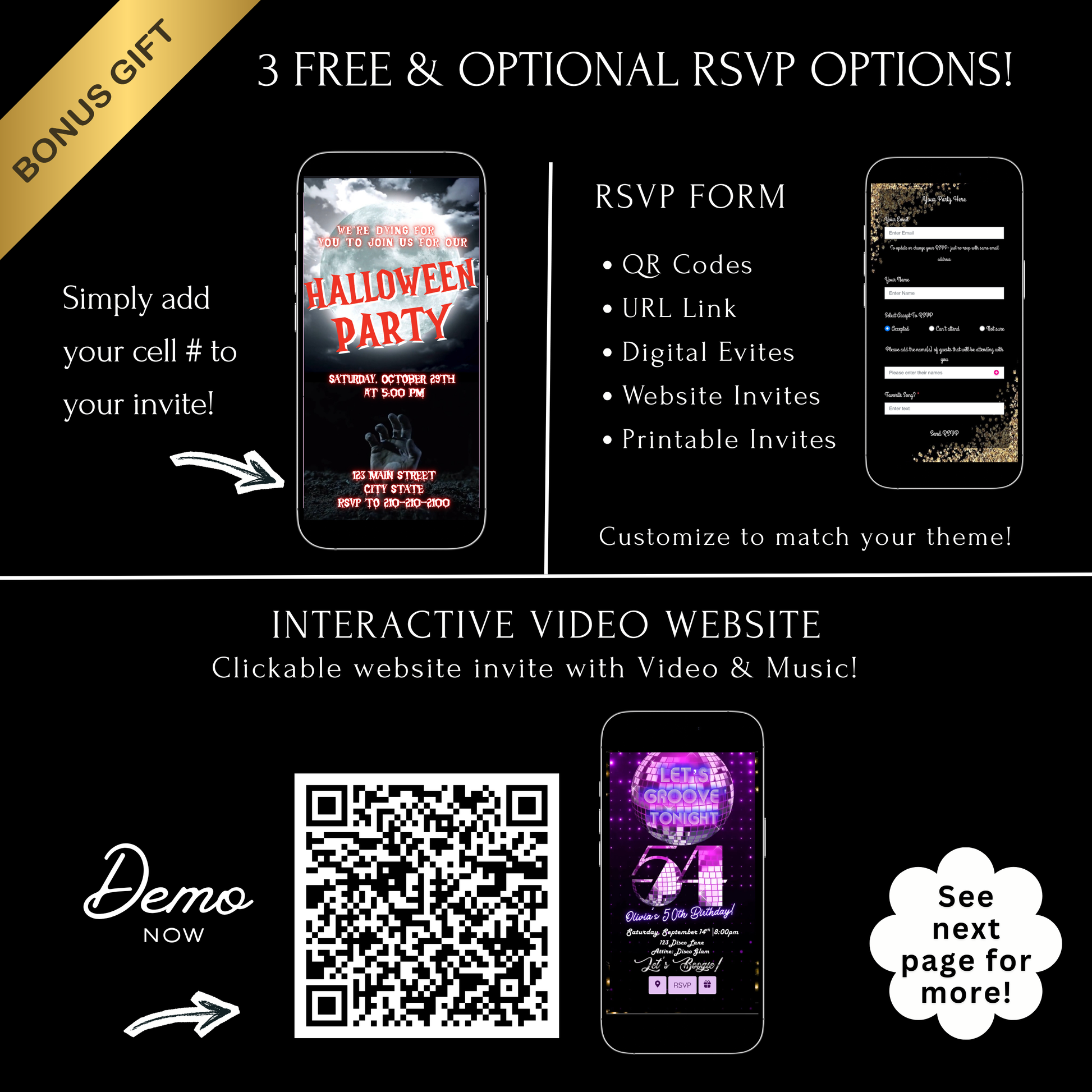 Sorgen Sie mit unserer editierbaren Halloween-Party-Videoeinladung für die richtige Stimmung für eine schaurig-schöne Nacht. Dieses aufregende Halloween-Design ist perfekt für Kostümpartys, Treffen in Spukhäusern oder jede andere Feier am 31. Oktober. Mit leuchtenden Halloween-Farben, gruseligen Animationen und passender Gruselmusik werden Ihre Gäste die Tage bis zum großen Abend zählen.