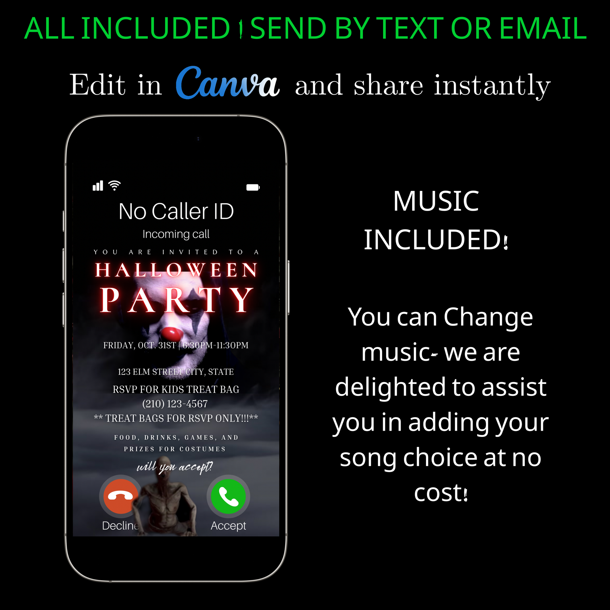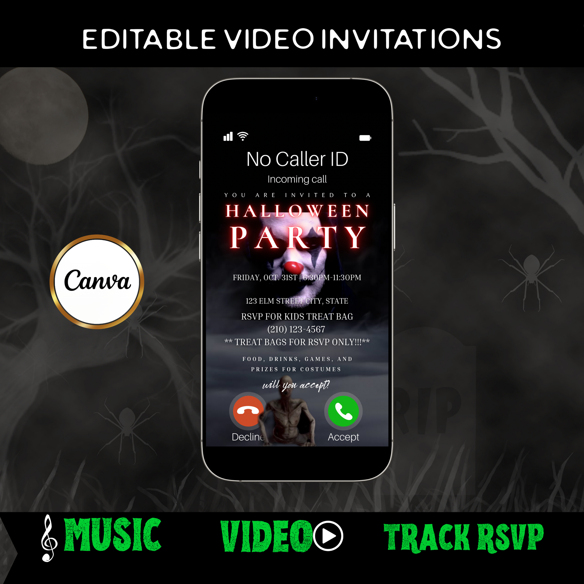 🕸 Halloween-Magie – Halloween-Videohintergrund, gruselige Schriftart, animierte Elemente und unheimliche Musik für eine lustige Halloween-Einladung, die Ihre Gäste lieben werden .