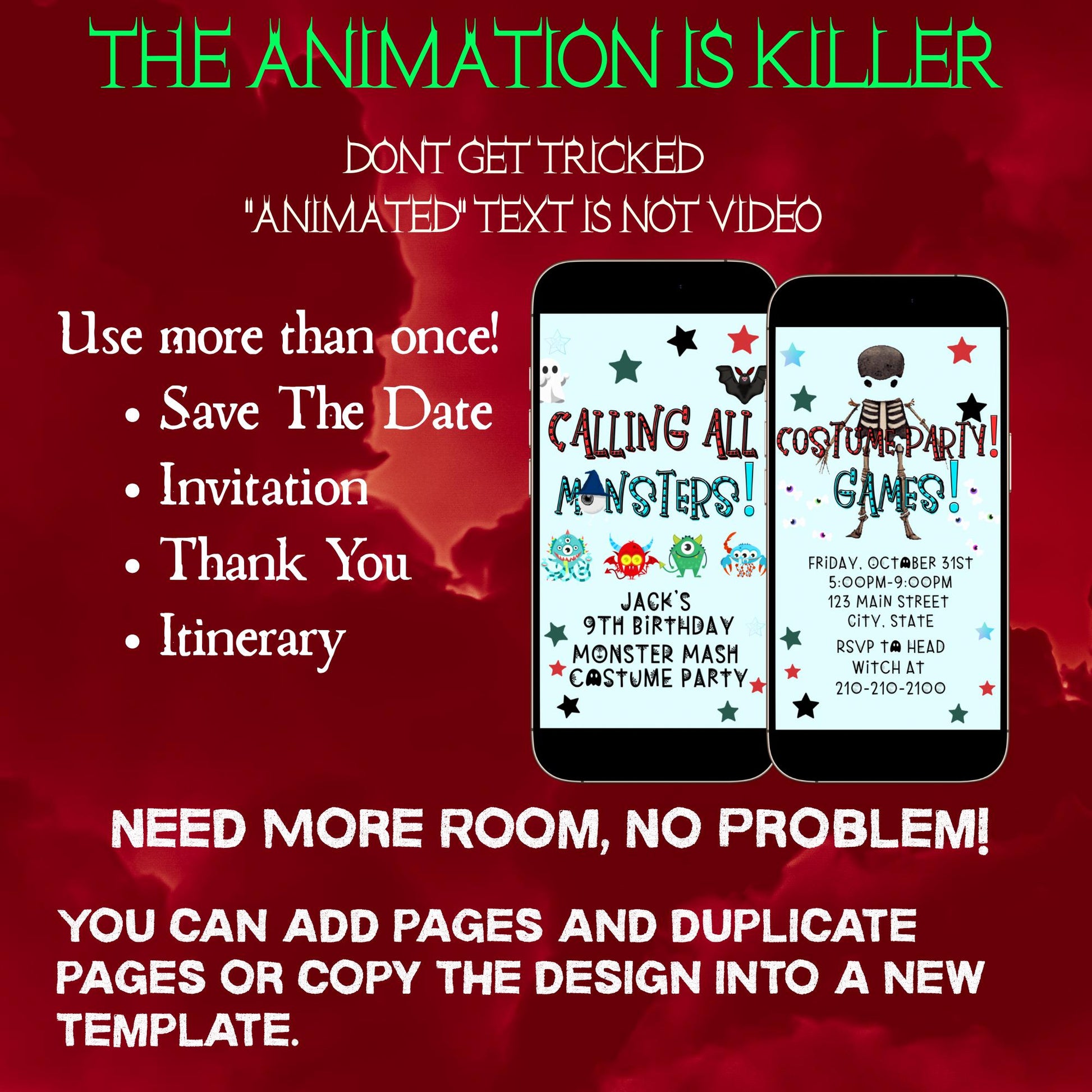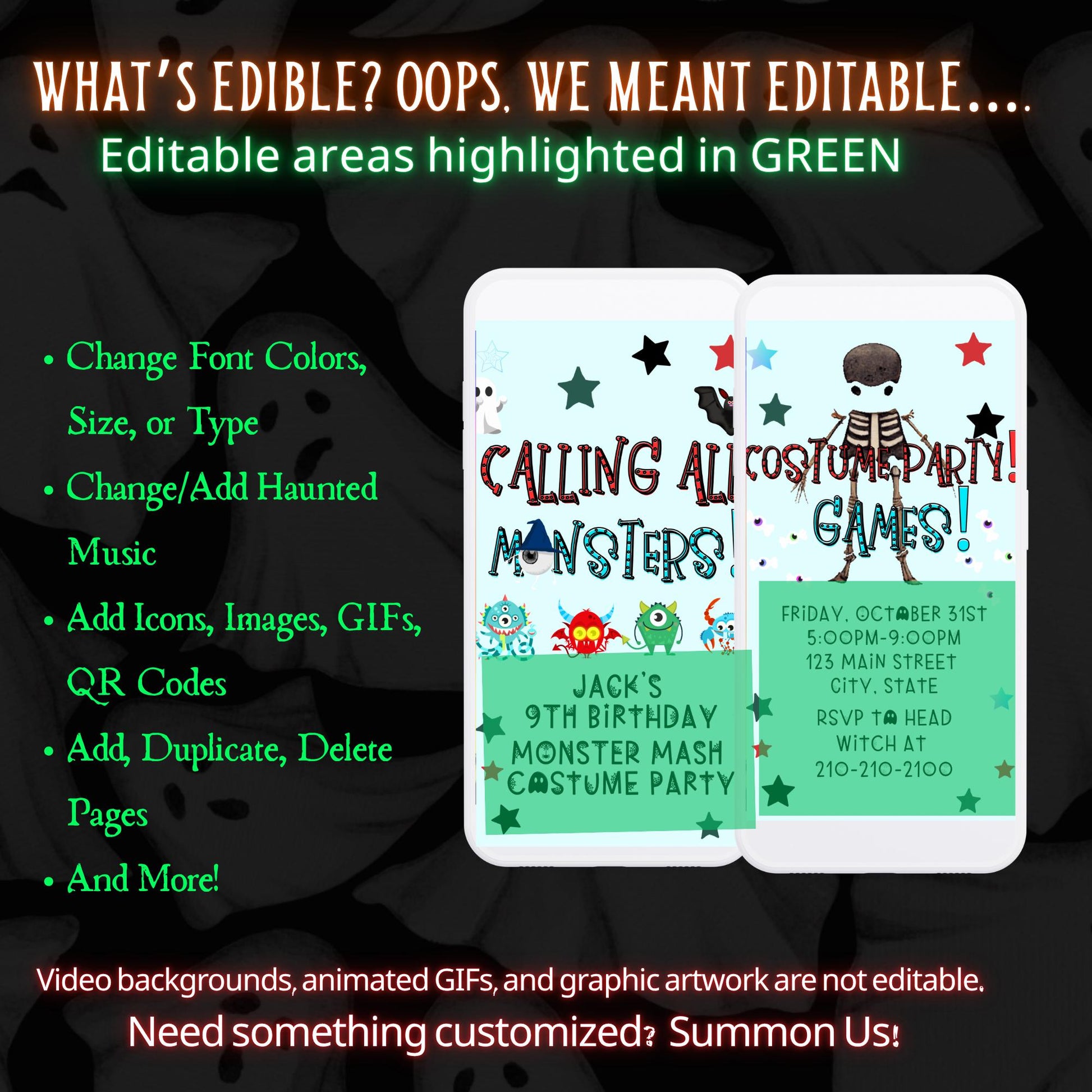 Halloween-Videoeinladung, animierte Monster-Mash-Einladung, bearbeitbare mobile Halloween-Party-Einladung