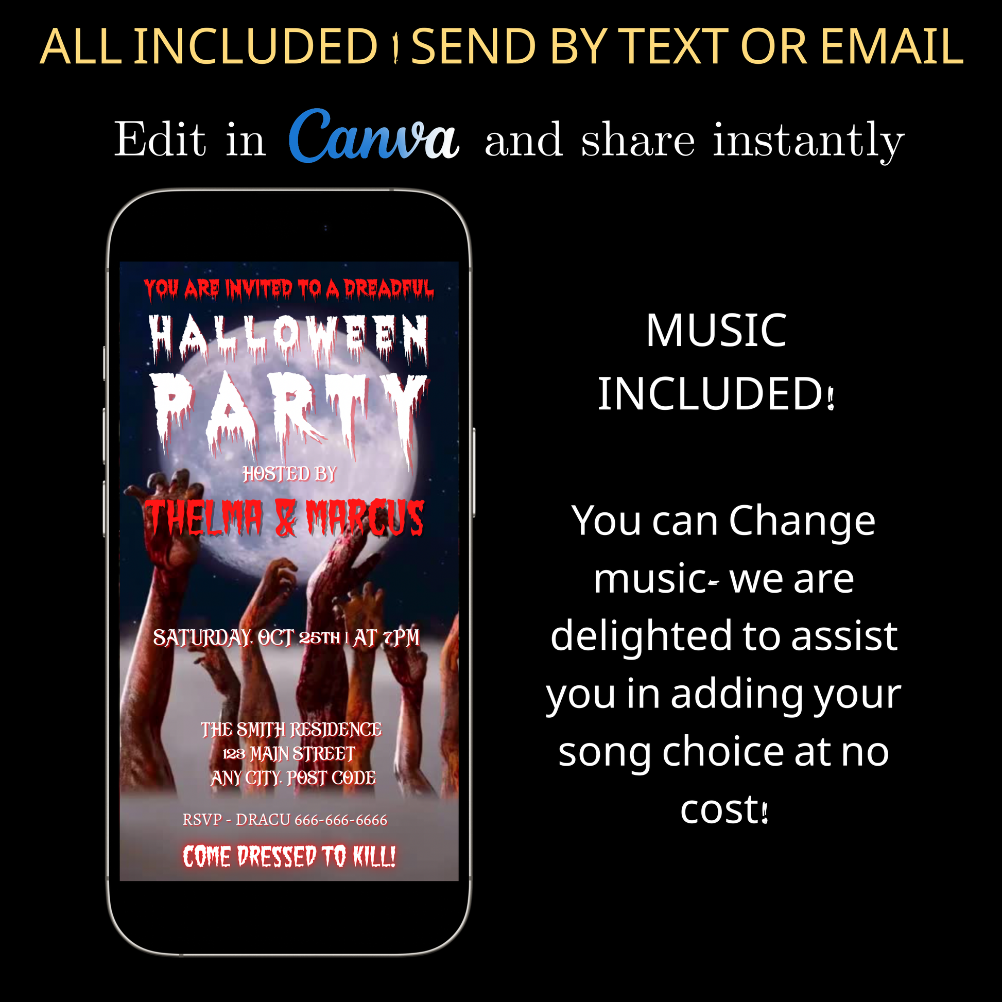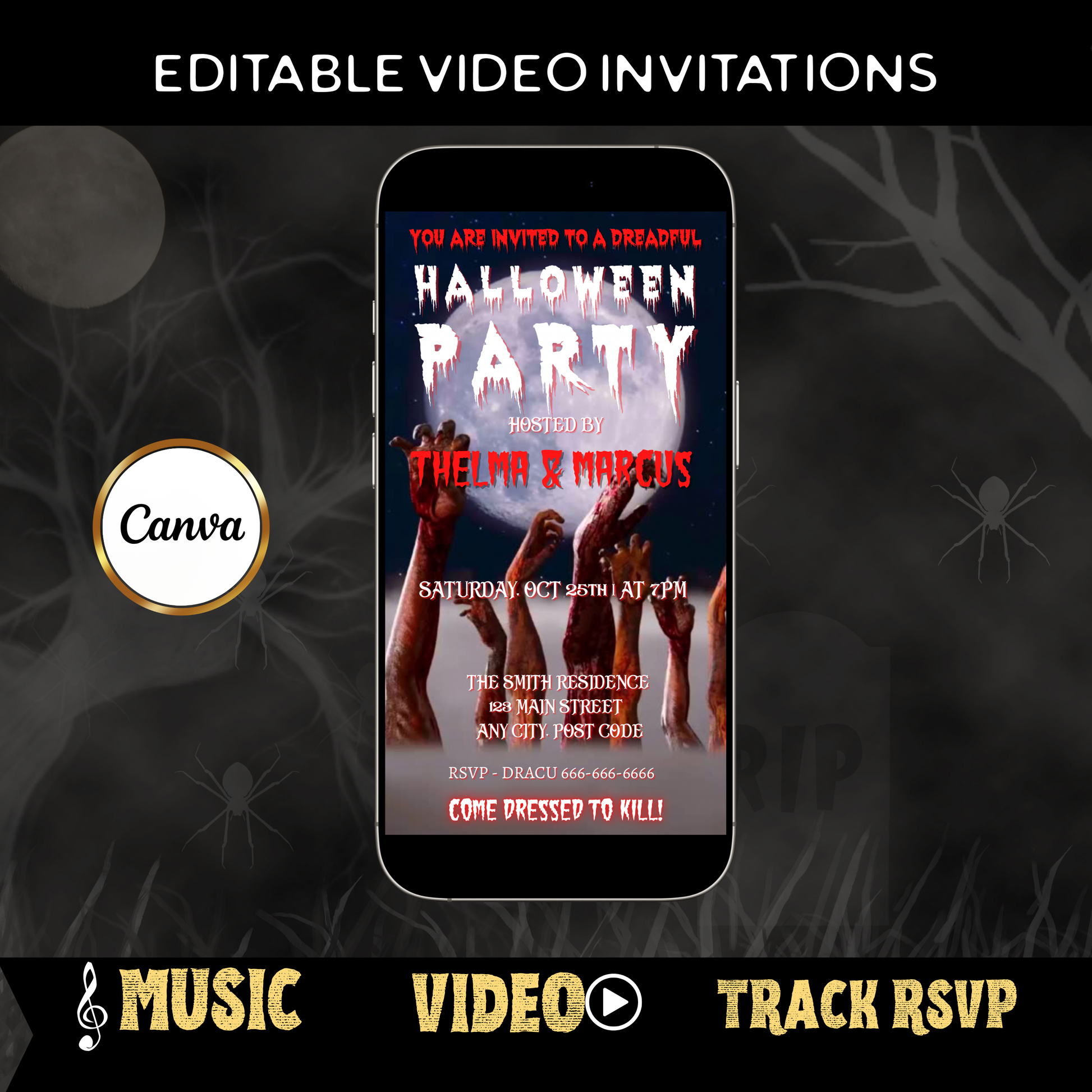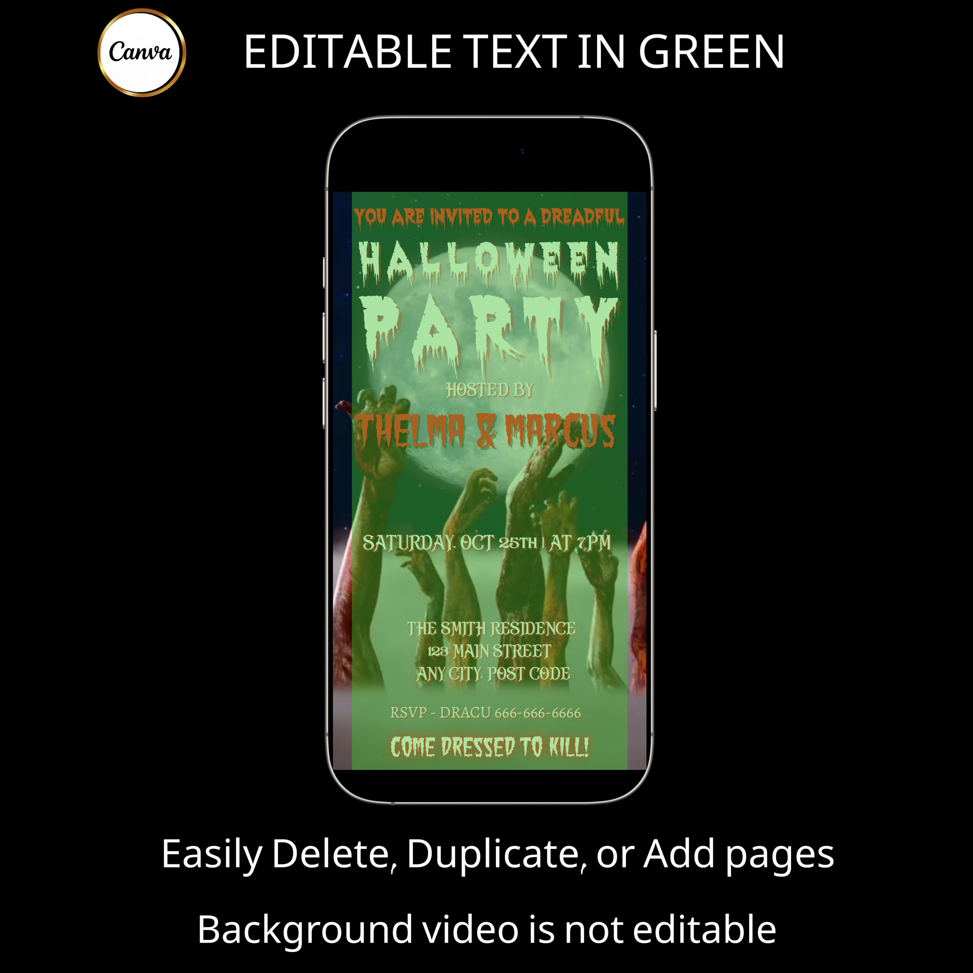 Halloween-Videoeinladung, animierte Zombie-Einladung, bearbeitbare mobile Halloween-Party-Einladung
