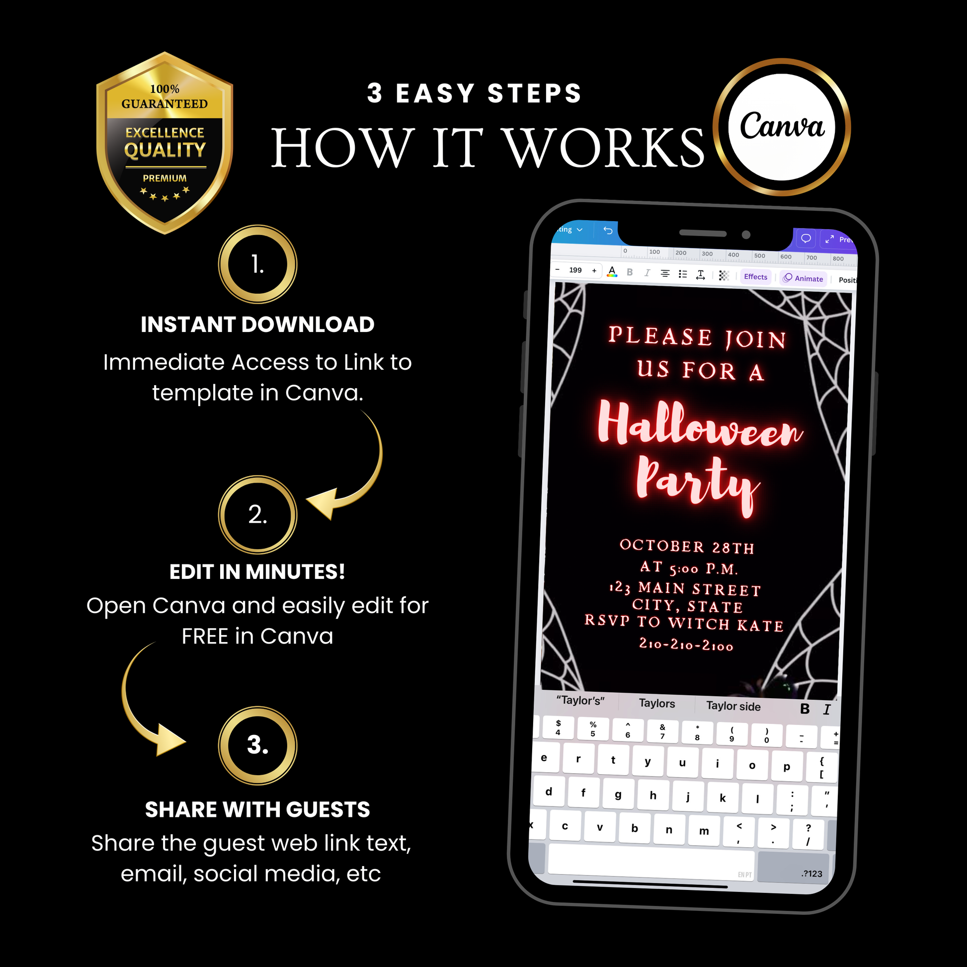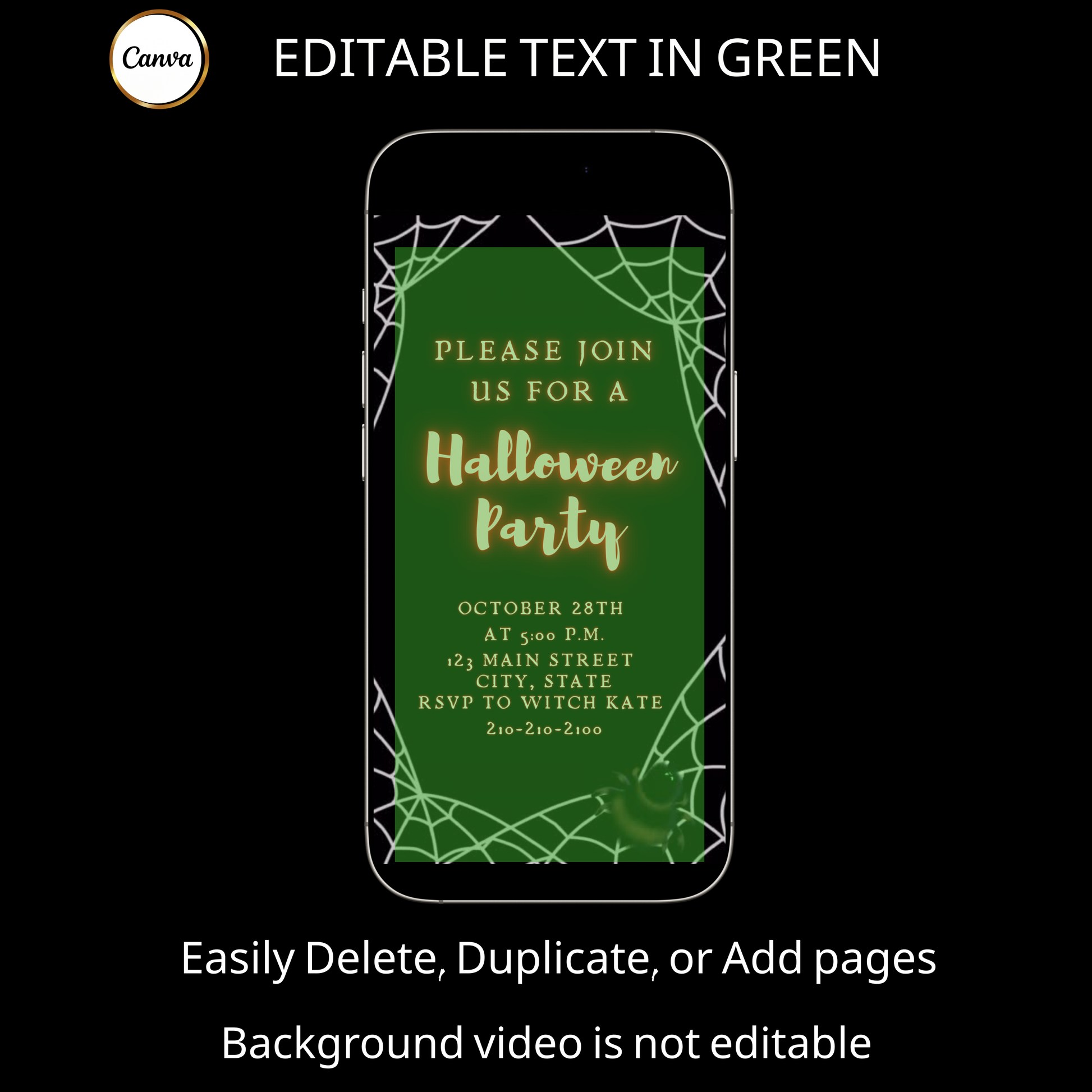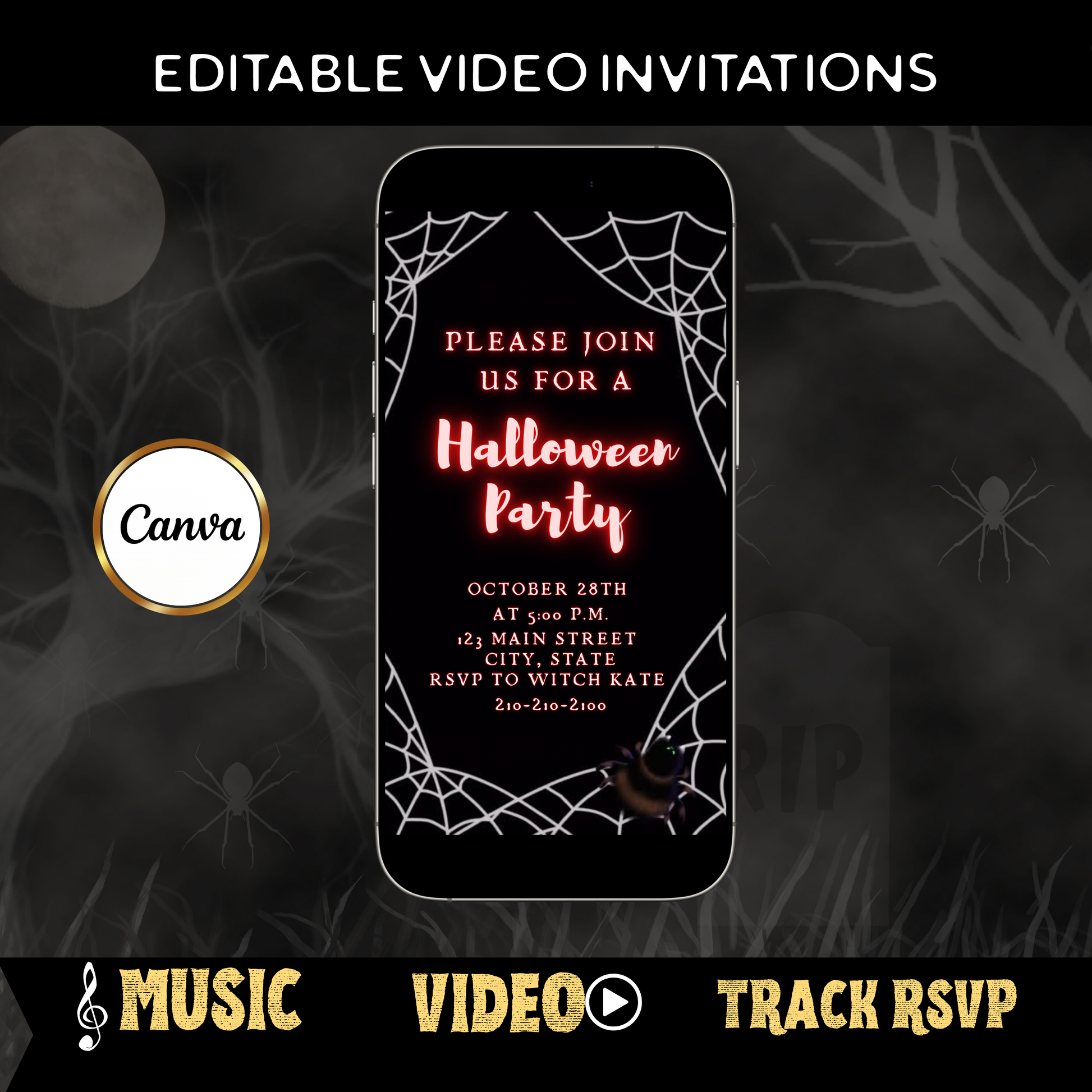 Halloween-Videoeinladung, animierte Einladung im Spinnennetz-Stil