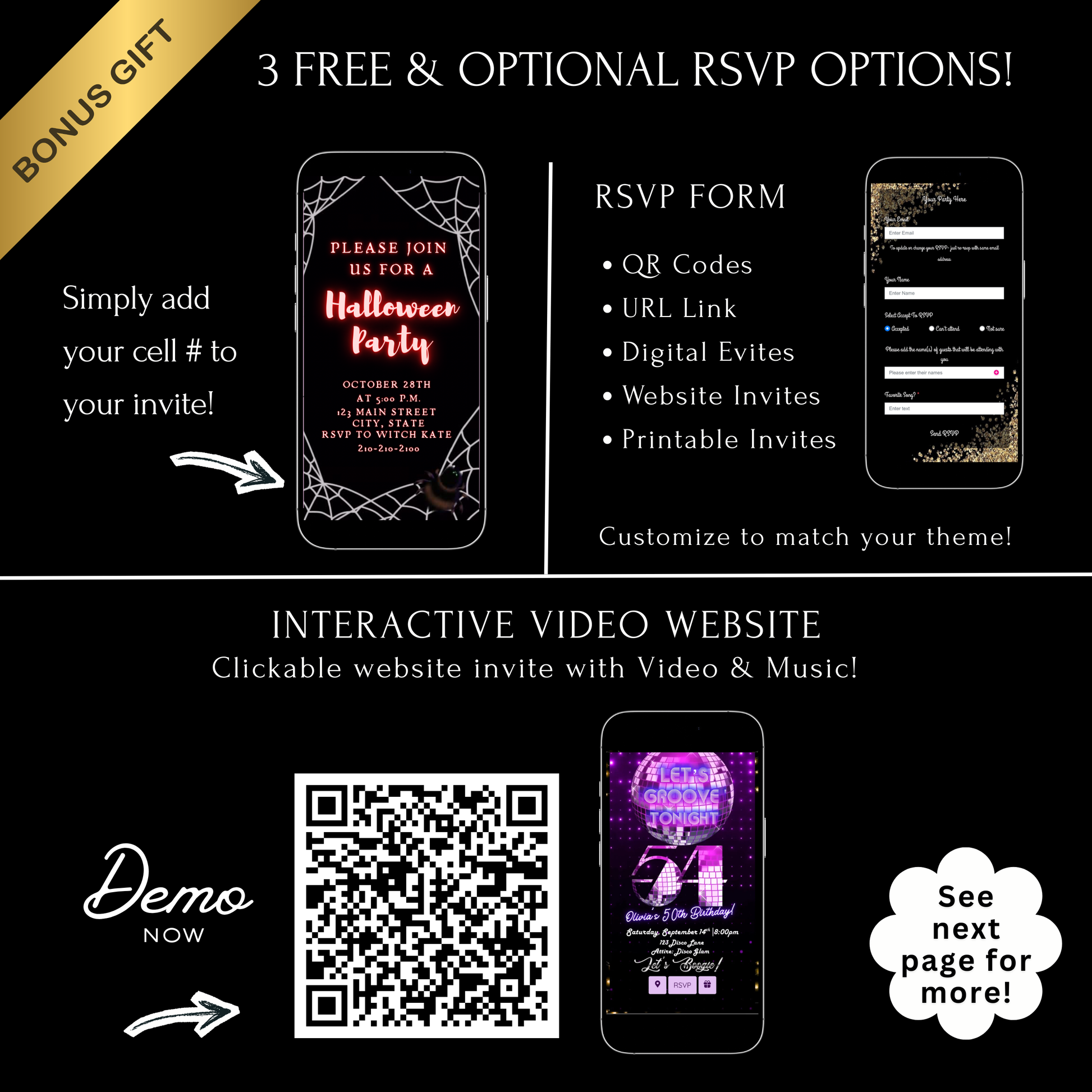Sorgen Sie mit unserer editierbaren Halloween-Party-Videoeinladung für die richtige Stimmung für eine schaurig-schöne Nacht. Dieses aufregende Halloween-Design ist perfekt für Kostümpartys, Treffen in Spukhäusern oder jede andere Feier am 31. Oktober. Mit leuchtenden Halloween-Farben, gruseligen Animationen und passender Gruselmusik werden Ihre Gäste die Tage bis zum großen Abend zählen.