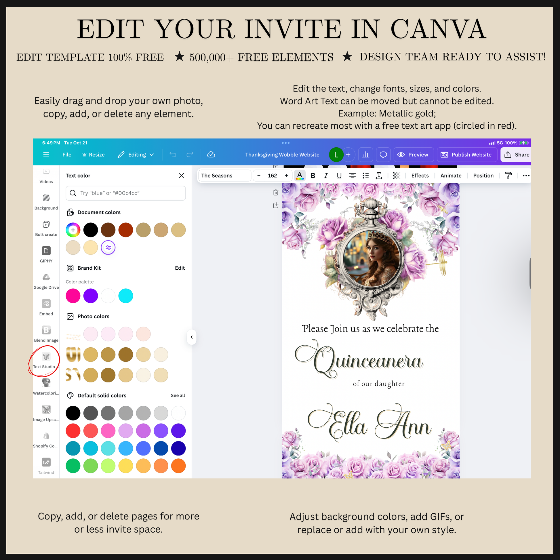 This is a template. Instant access. Nothing to install. Free to edit. Easy to use!Let’s make this quince unforgettable 💙
