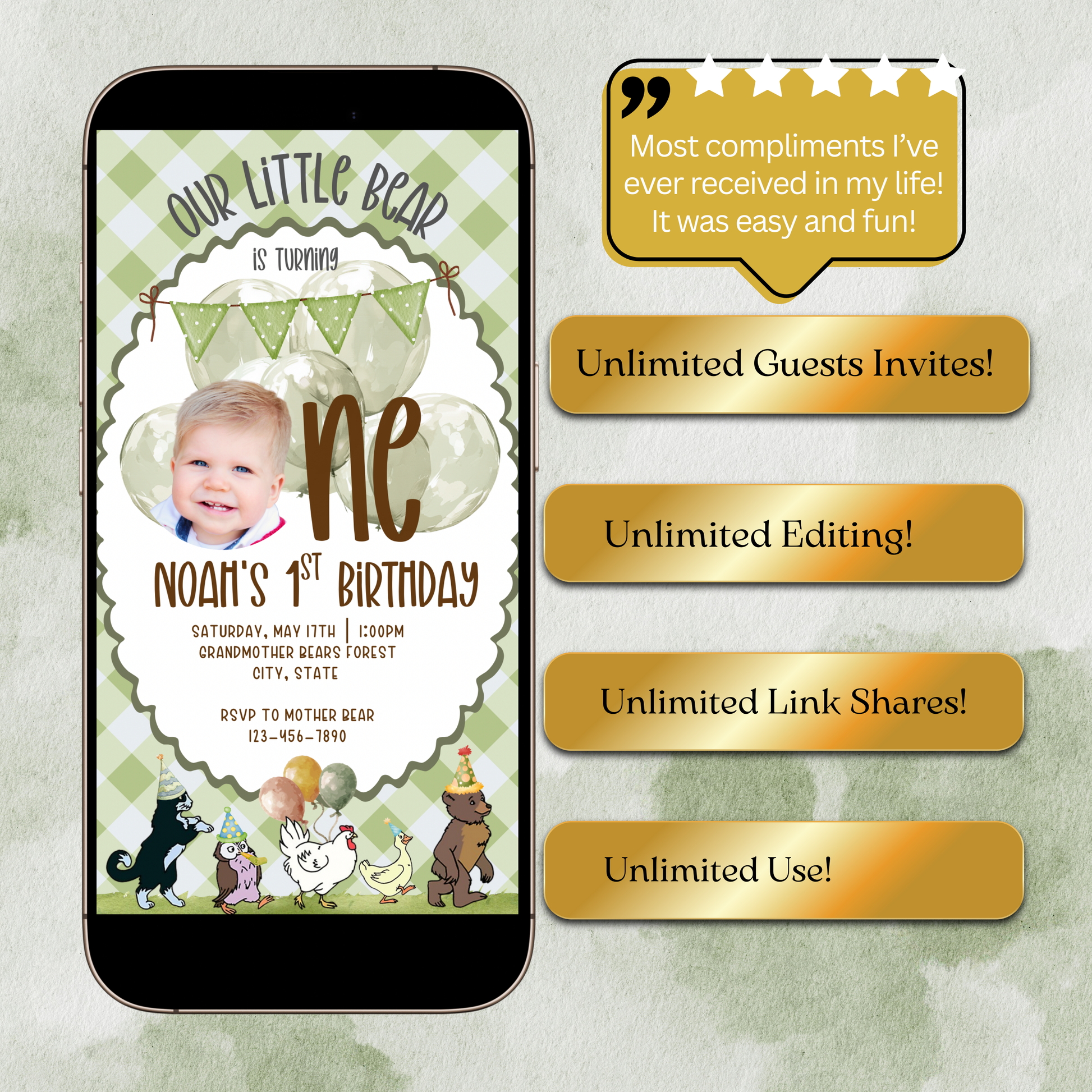 Little Bear Video Invitation Canva Template, Teddy Bear Baby Shower Invite, First Birthday Bear Party Animated Invite, Editable Mobile Evite with Music & RSVP