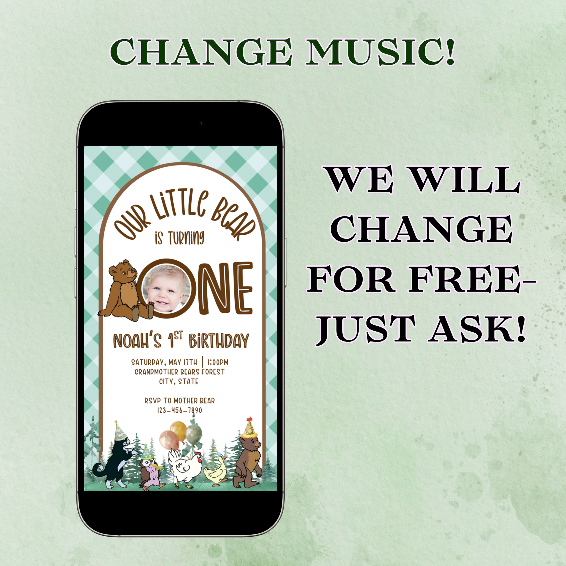 Little Bear Video Invitation, Teddy Bear Baby Shower Invite, First Birthday Bear Party Animated Invite, Editable Mobile Evite with Music & RSVP