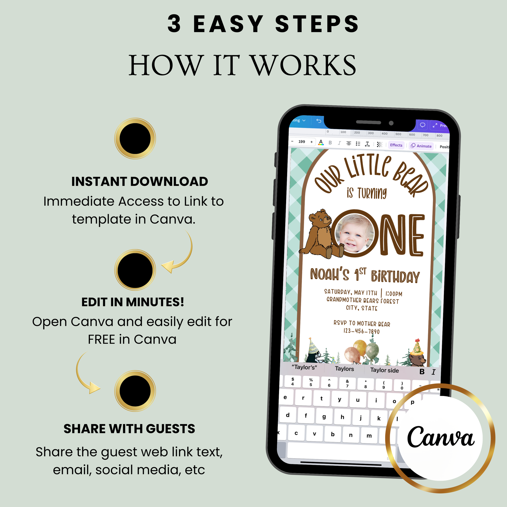 Celebrate your little one with the sweetest Little Bear animated video invitation 🧸 This adorable teddy bear–themed Canva video invite is perfect for a baby shower, first birthday, or bear-themed party and is fully editable right from your phone or computer.