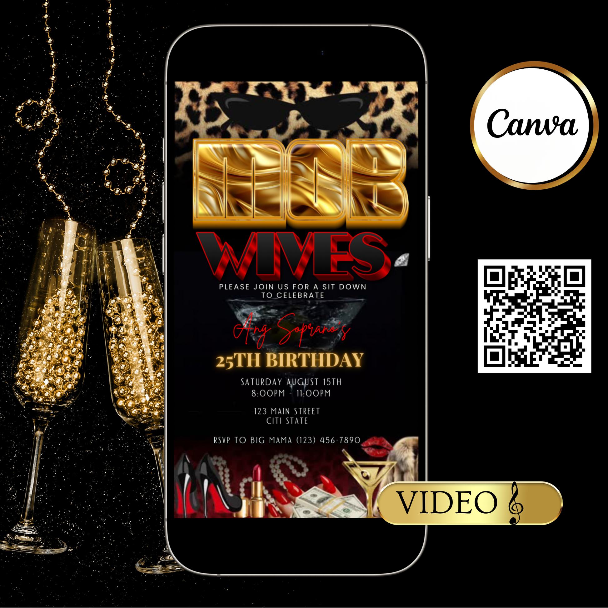 Mob Wife Video | Invitation Glam Mafia Party Invite | Canva Template
