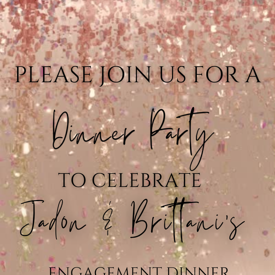 Feiern Sie Ihr besonderes Ereignis unvergesslich mit dieser animierten Video-Einladung zum Verlobungsdinner in Roségold-Aquarell-Glitzer! Die editierbare Canva-Video-Einladung ist im mobilen Hochformat gestaltet und eignet sich perfekt zum Teilen per SMS, E-Mail oder über soziale Medien.