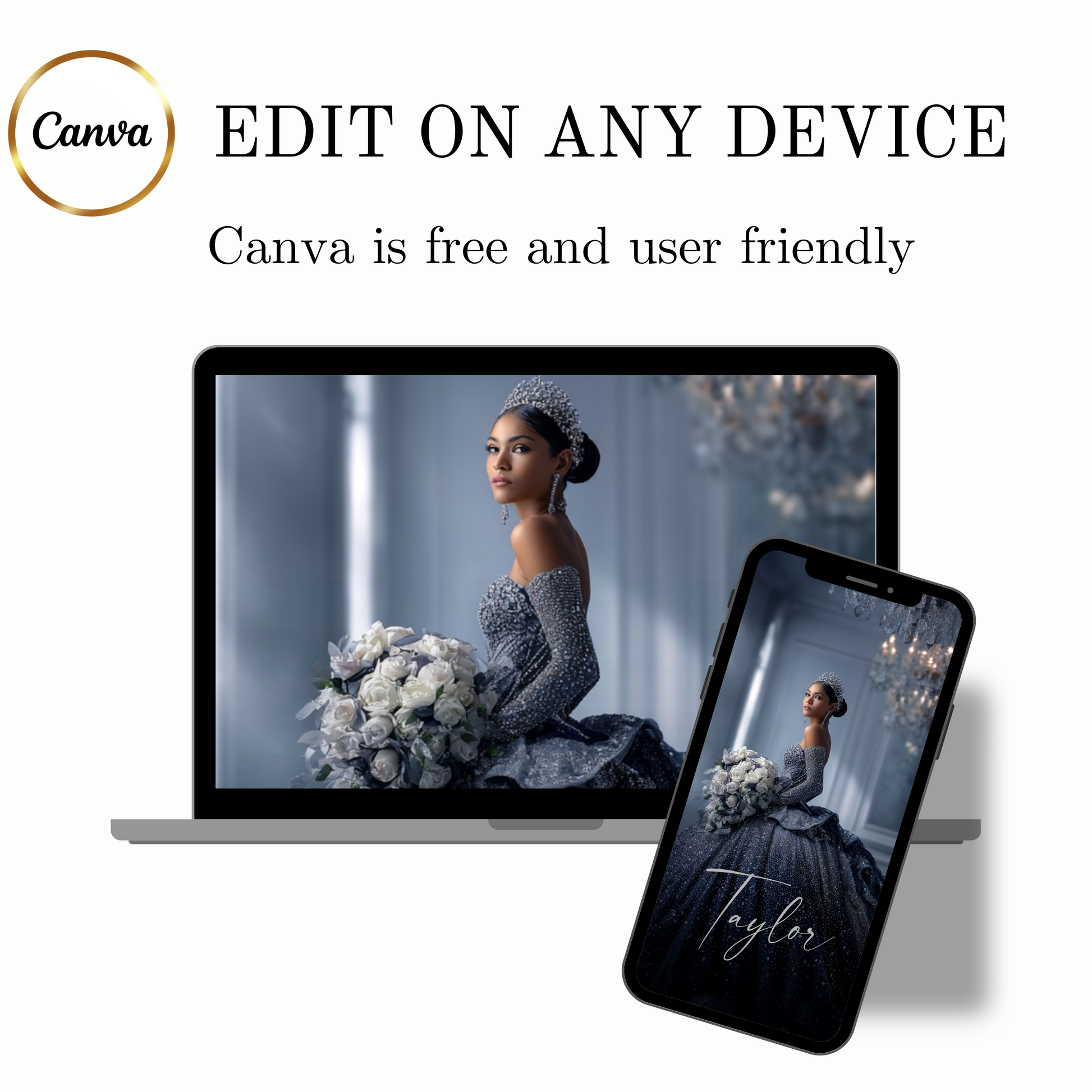 Looking for the best quinceañera invitations? This editable Canva video invitation is perfect for sweet 15 celebrations, offering a luxury design, mobile-friendly sharing, and an optional RSVP website to manage your guest list. Create a beautiful quinceañera invitation in minutes and impress your guests from the moment they open it.