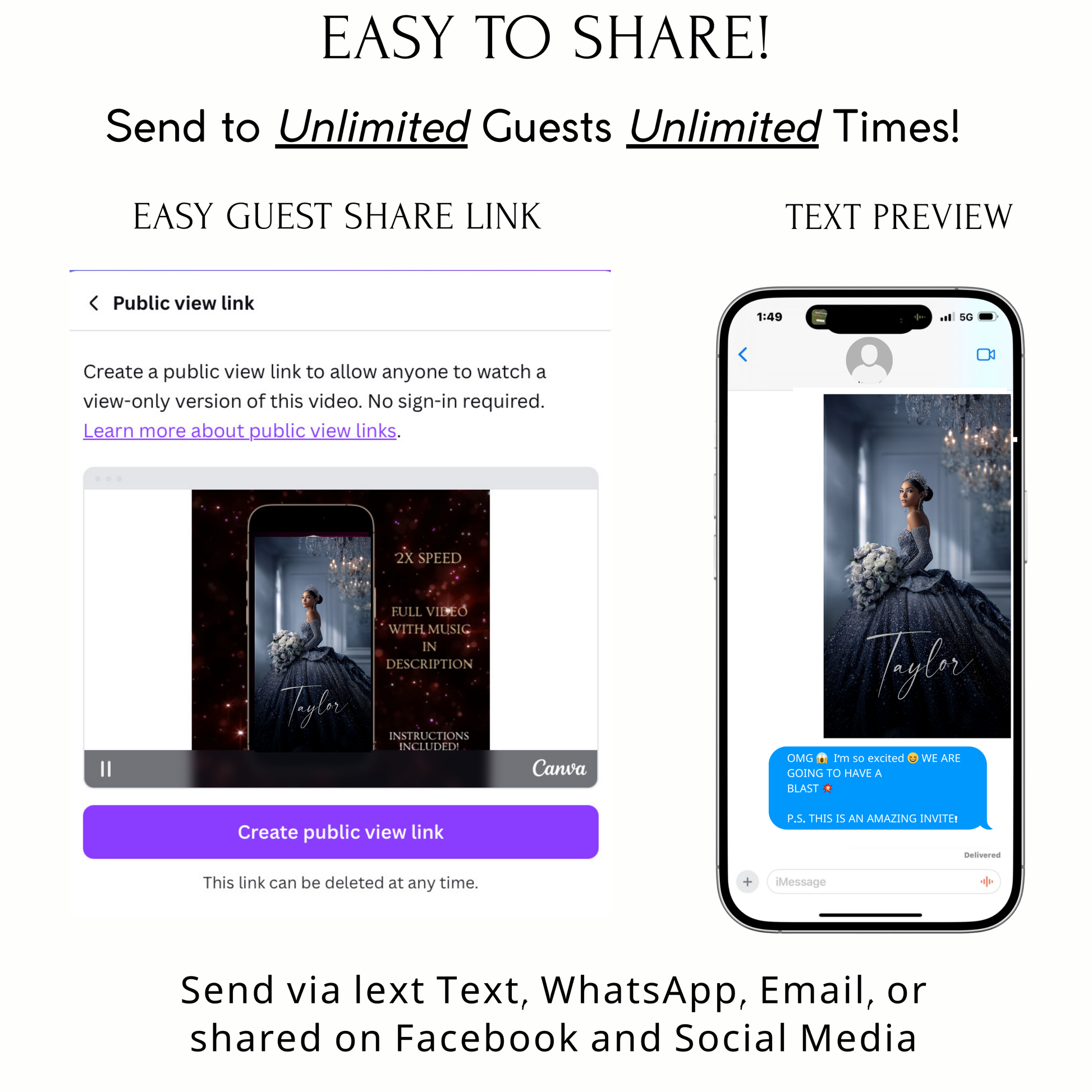 📲 Easy to Share -Send your invitation anywhere: