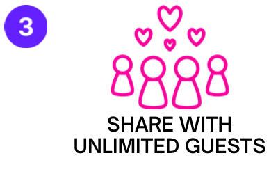 It's easy, and we provide step-by-step sharing instructions in your digital download. We recommend the public share link for the best guest viewing experience.