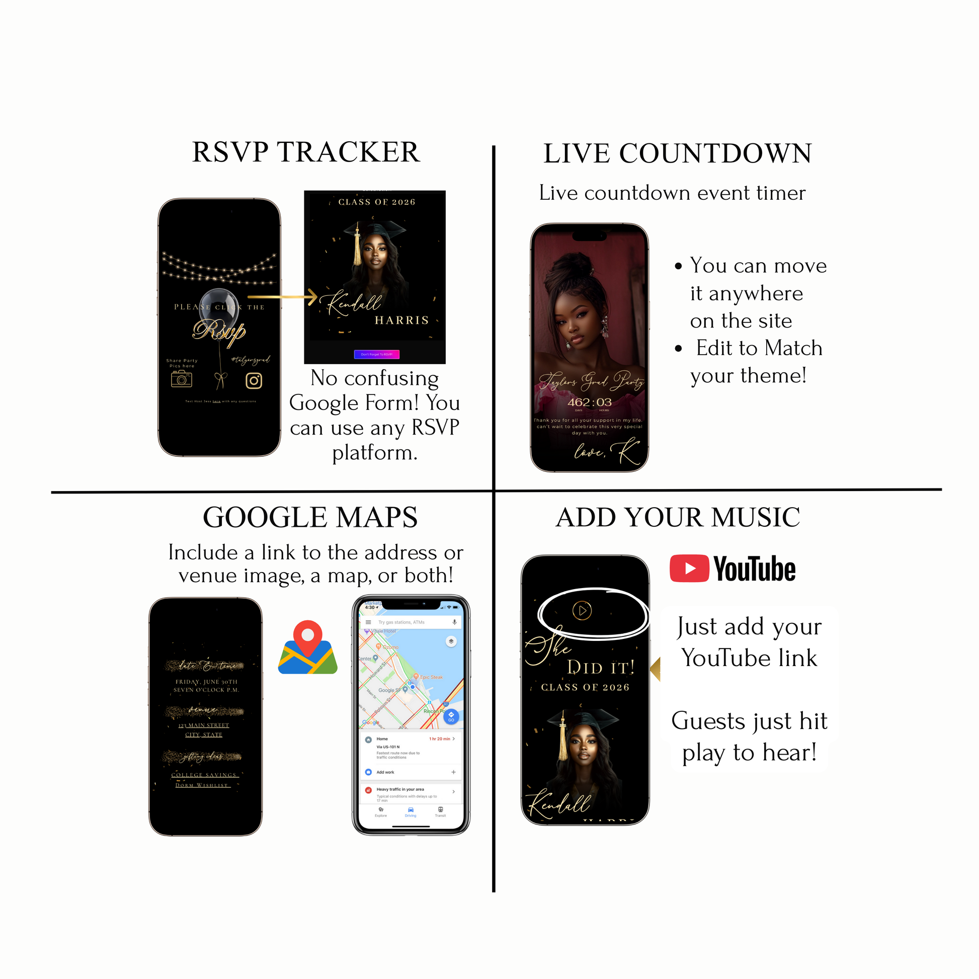 3 Free Gifts - RSVP tracker | Graduation Newspaper | Guest Photo Share link