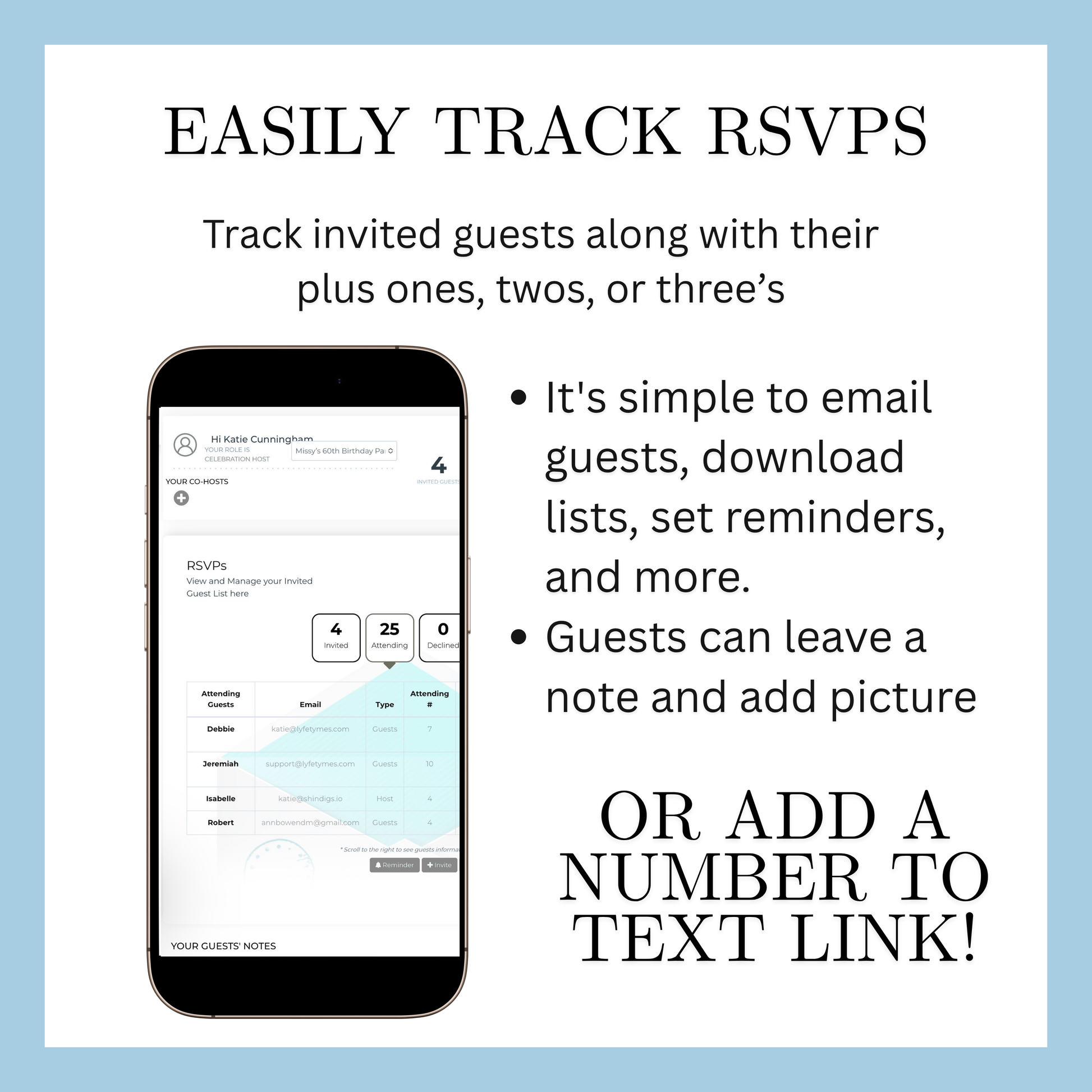 📲 Guests can RSVP via text, email, SMS, or WhatsApp