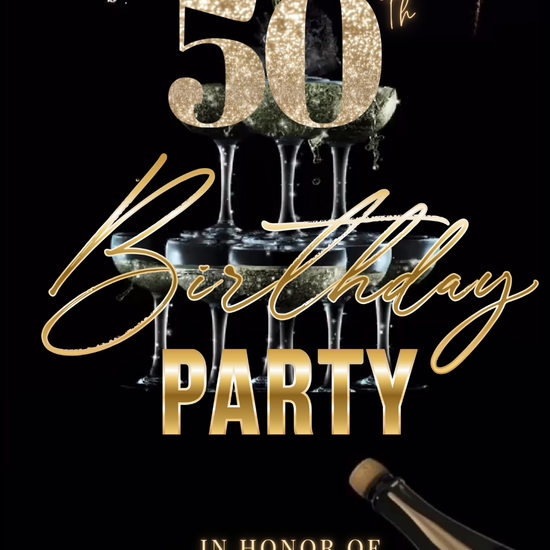 Celebrate turning 50 in unforgettable style with this Black Gold Champagne Tower 50th Birthday Video Invitation! This animated, editable Canva video invitation is designed in a mobile-first vertical format and is perfect for sharing by text, email, or social media.