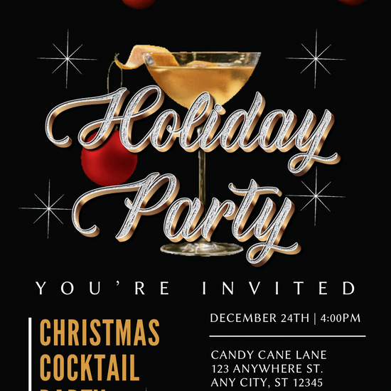 Christmas Party Video Invitation – Animated Holiday Cocktail Party - Editable Mobile Evite with Music