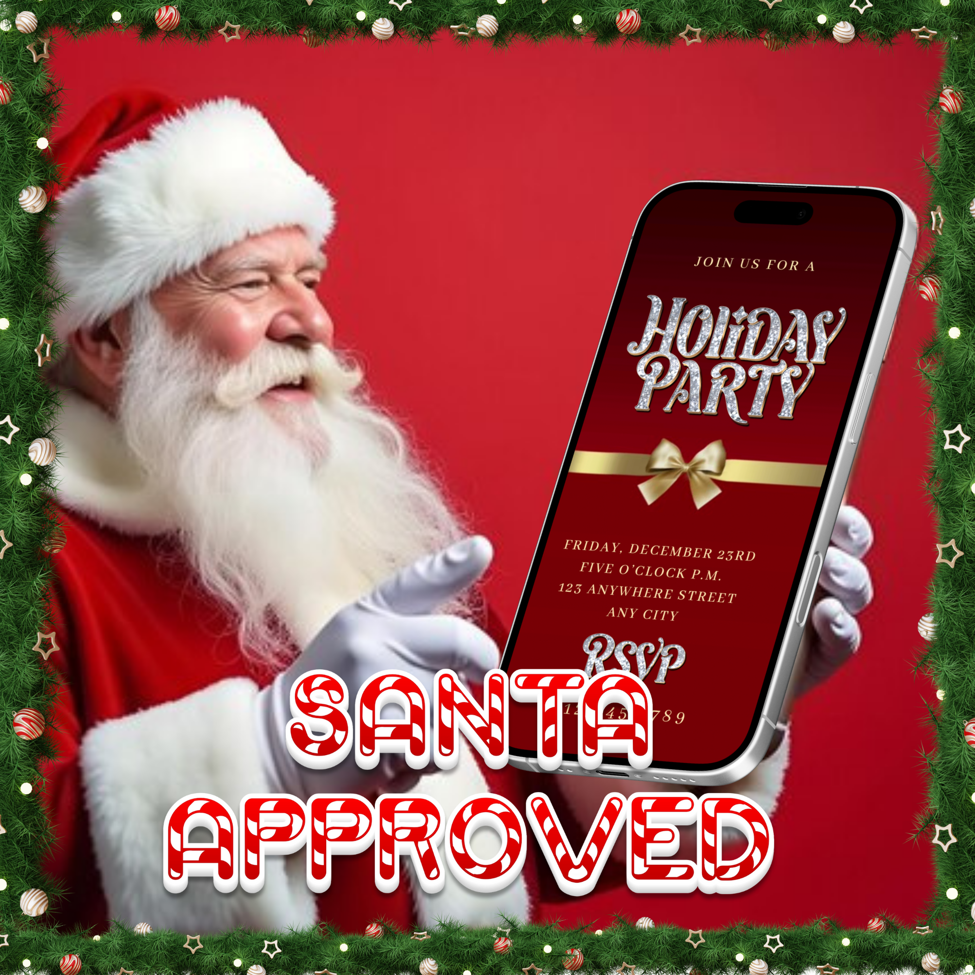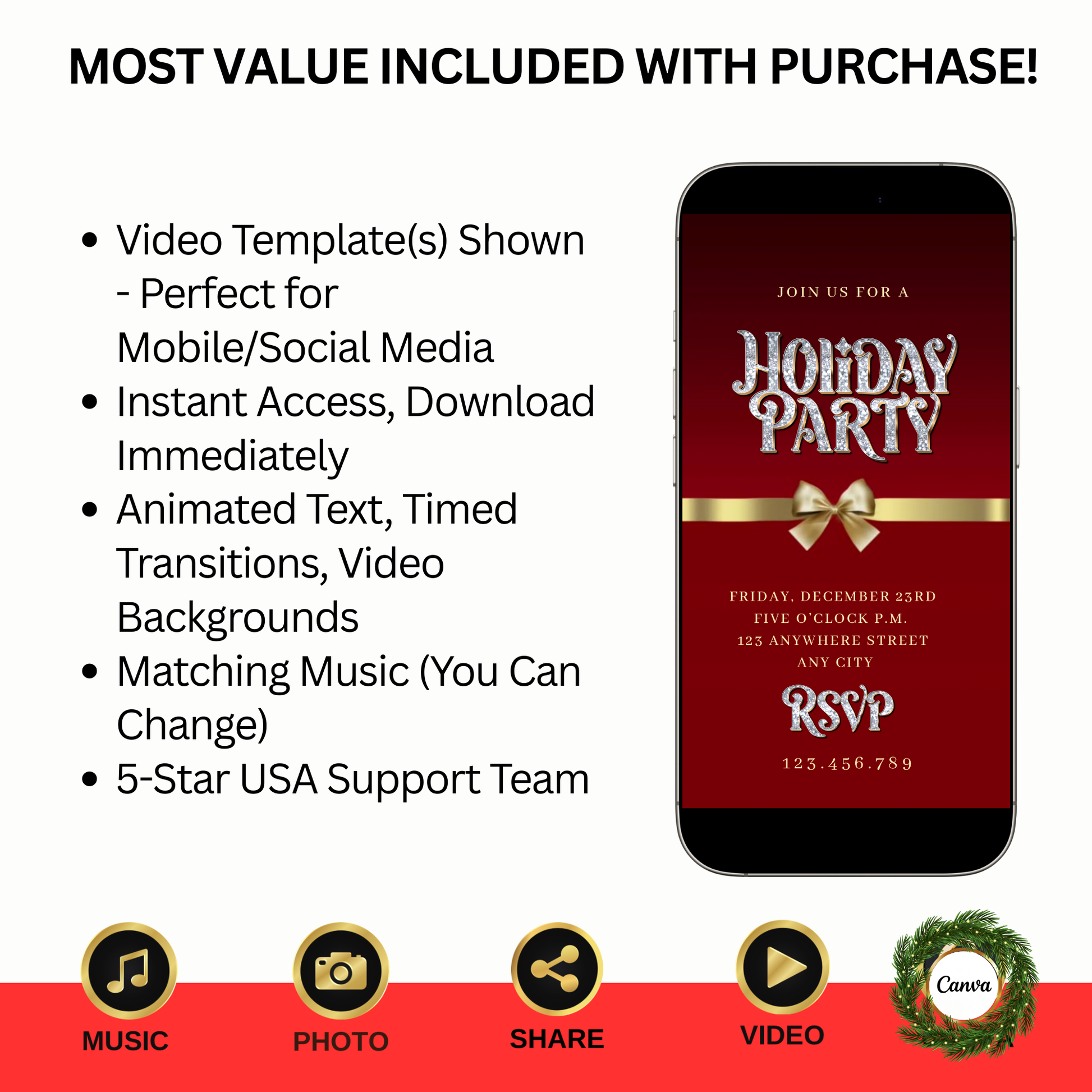 Christmas Party Video Invitation – Editable Red and Gold Elegant Holiday Evite