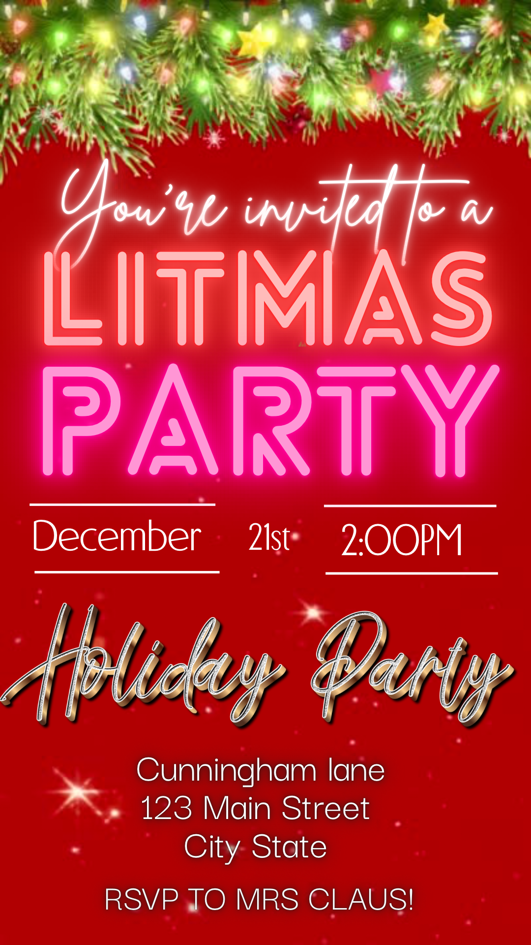 Christmas Party Video Invitation – Litmas Animated Holiday Lights | Digital Evite with Music for Mobile and Text Sharing