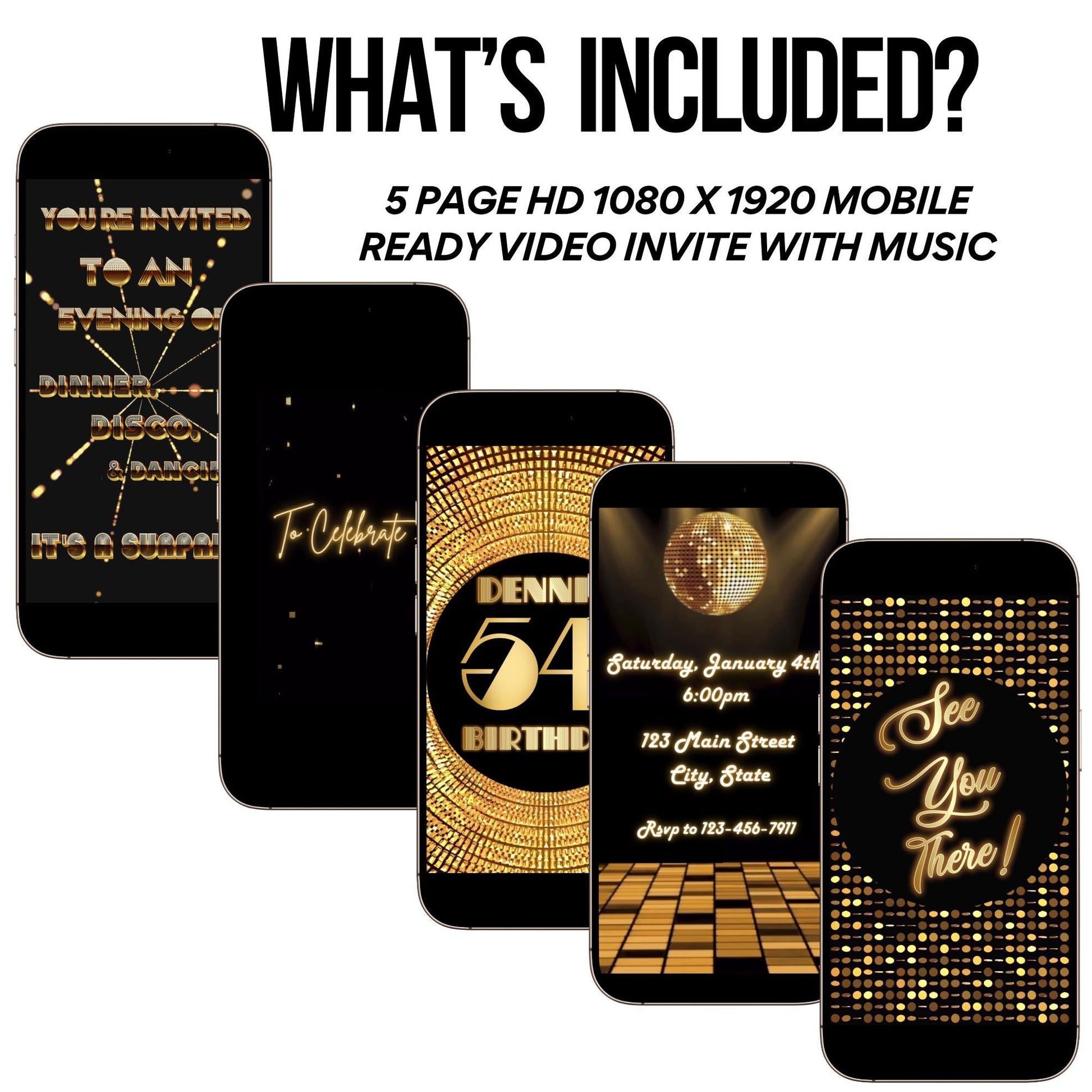 Gold Disco Video Invitation - Disco Ball Studio 54 Birthday Invite
