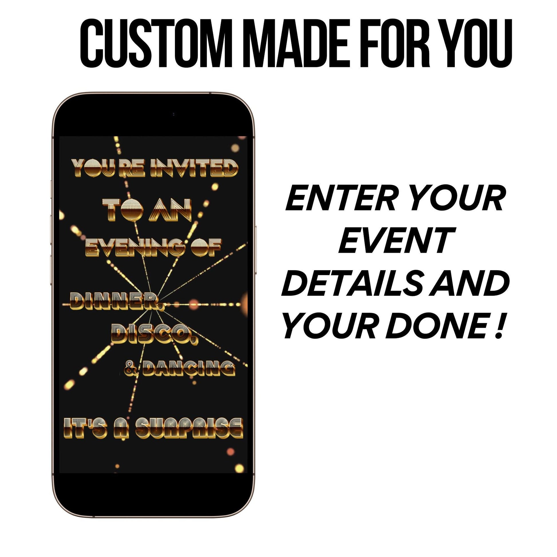 Let’s boogie! Get ready to dance the night away with this Disco Editable Video Invitation! Featuring retro 70s vibes, neon lights, glittery disco balls, and groovy party aesthetic, this invite is perfect for bachelorette parties, birthdays, girls’ nights, graduations, raves, and glow parties. Customize it with your event details and instantly share via text, email, or social media to set the tone for a high-energy, unforgettable night!