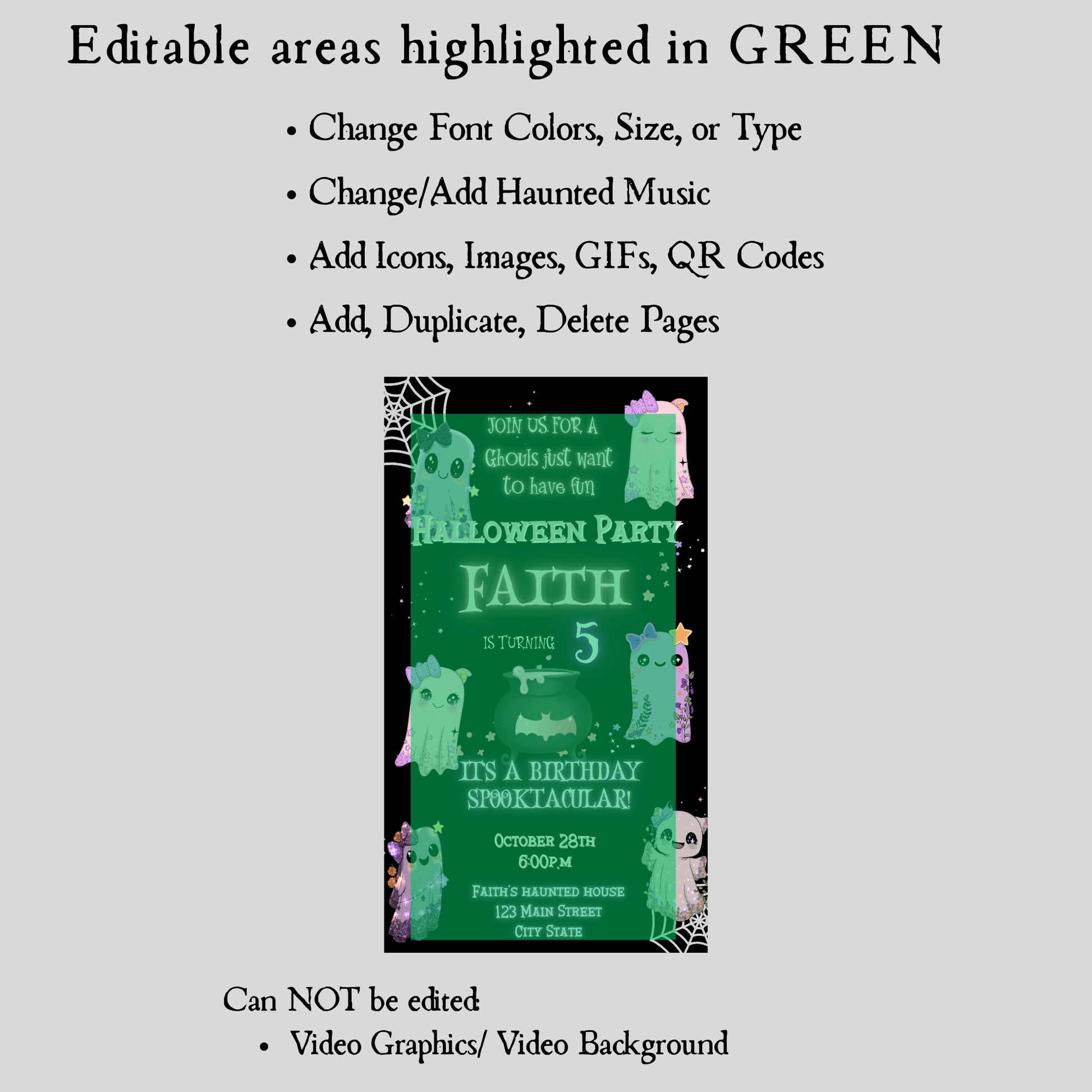 Cute Ghost Halloween Video Invitation | Pink Ghost Animated Editable Halloween Party Mobile Evite