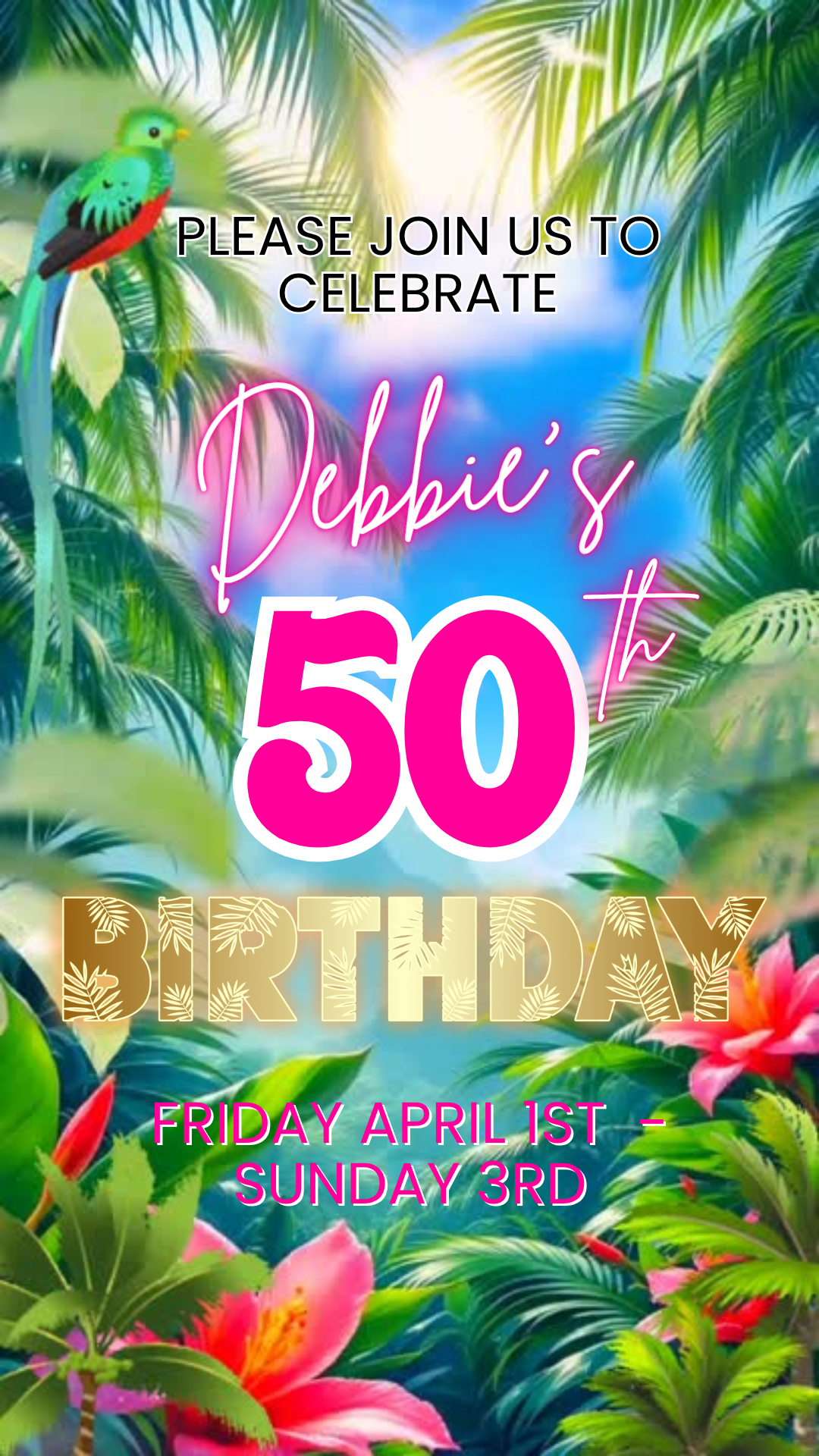 Planning the ultimate girls' trip or tropical getaway? This tropical travel itinerary editable video template birthday weekend schedule beach trip evite is your stylish and fun way to share every detail! Designed with palm leaves, beachy vibes, and a clean layout, this animated Canva video template makes it easy to customize your schedule, location, music, and optional photo—then download and send your invite as an MP4 or watch link. Celebrate your next tropical event with our Luau Video Invitation & Tropical Party Itinerary. Perfect for birthdays, graduations, or any Hawaiian-themed party, this editable template allows you to customize details effortlessly. Download instantly and impress your guests with a vibrant, animated invitation.