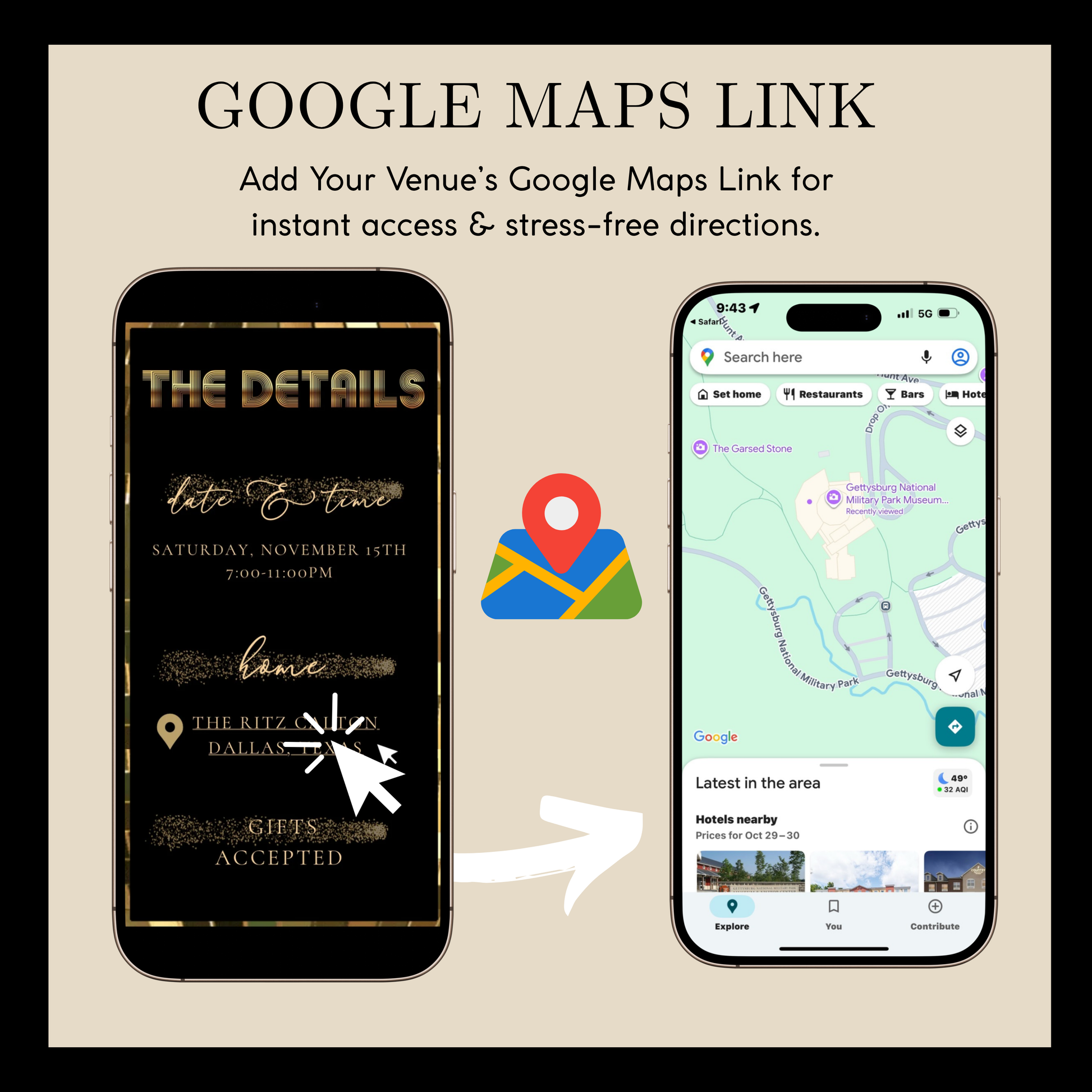Host the ultimate Disco Party to celebrate your big milestone! Inspired by Studio 54 black and gold modern style, this disco invitation and website adds a classic touch to your celebration.