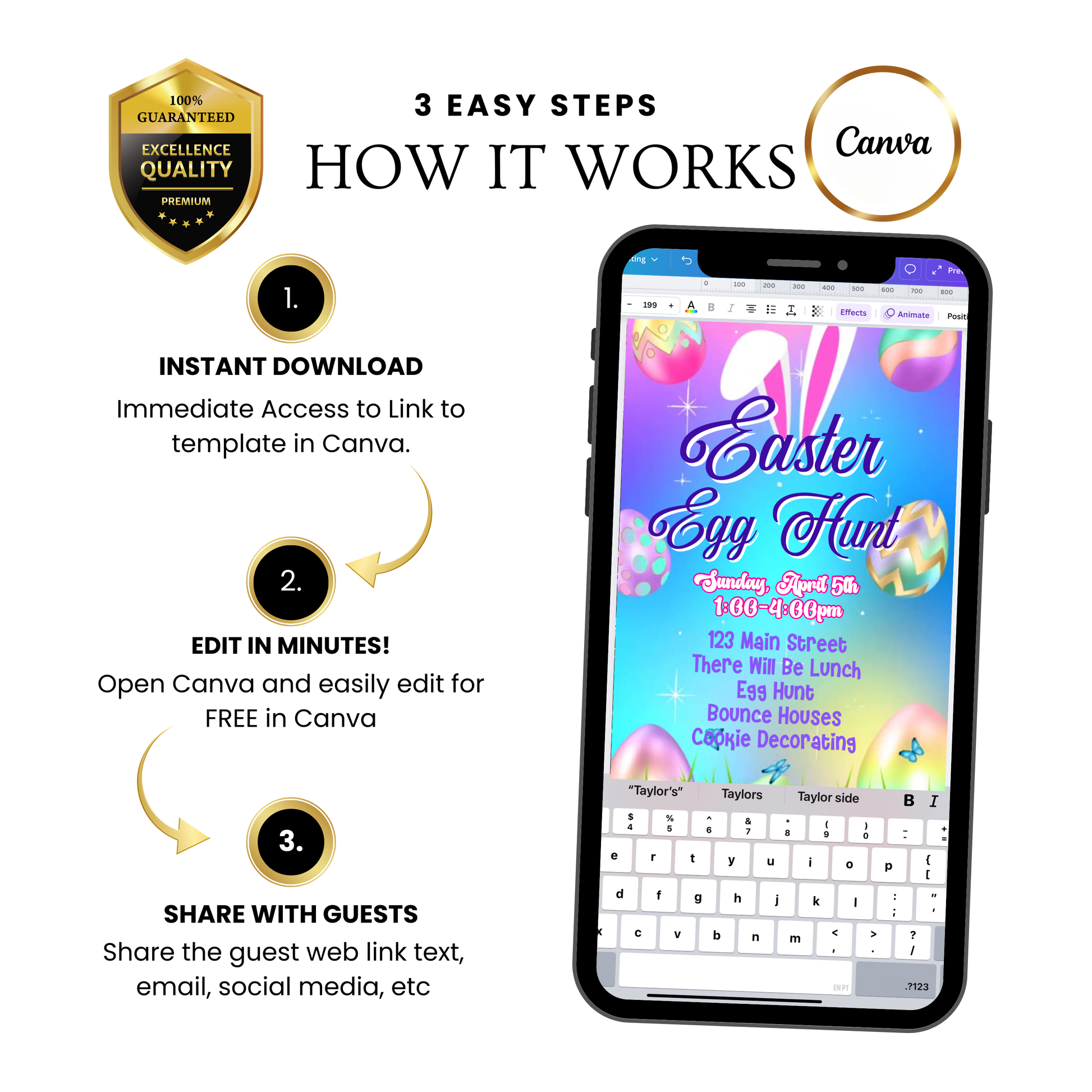 Easter Video Invitation, Easter Egg Hunt Animated Invite, Digital Canva Template