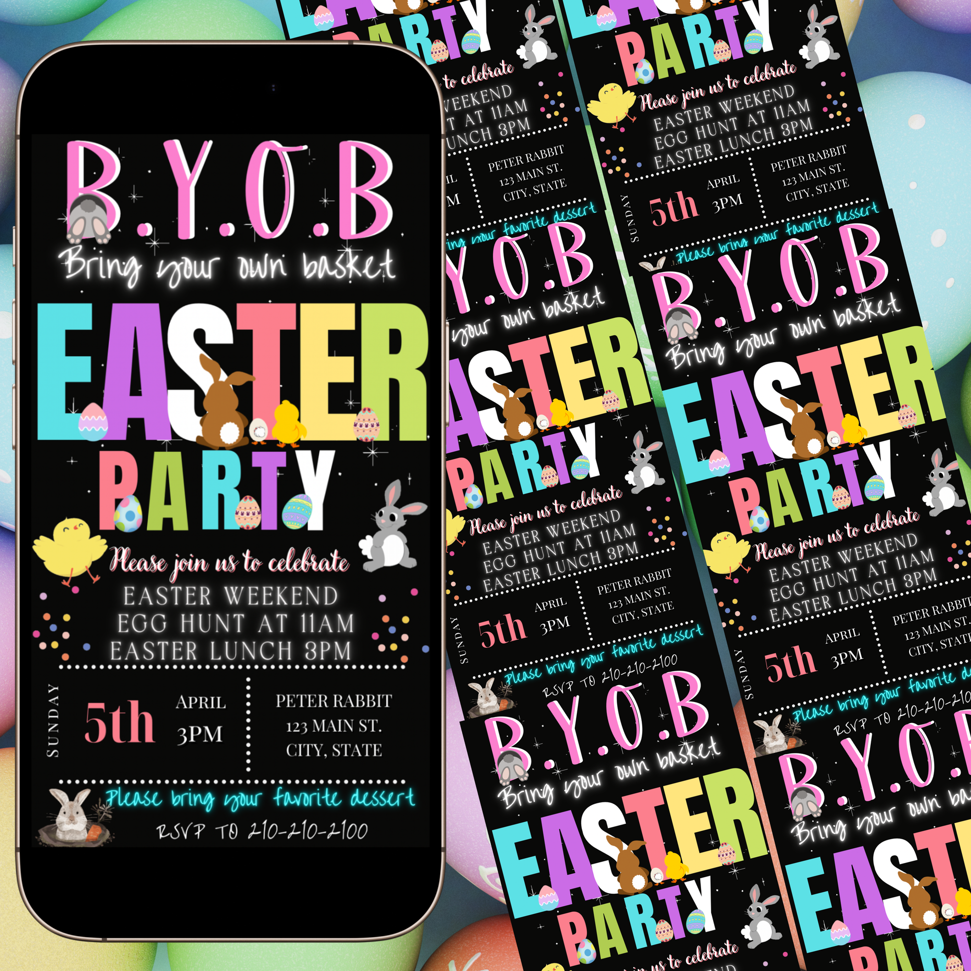 🐣 Bring your own Easter Basket and Party With My Peeps Easter Video Invitation – Editable Canva Template