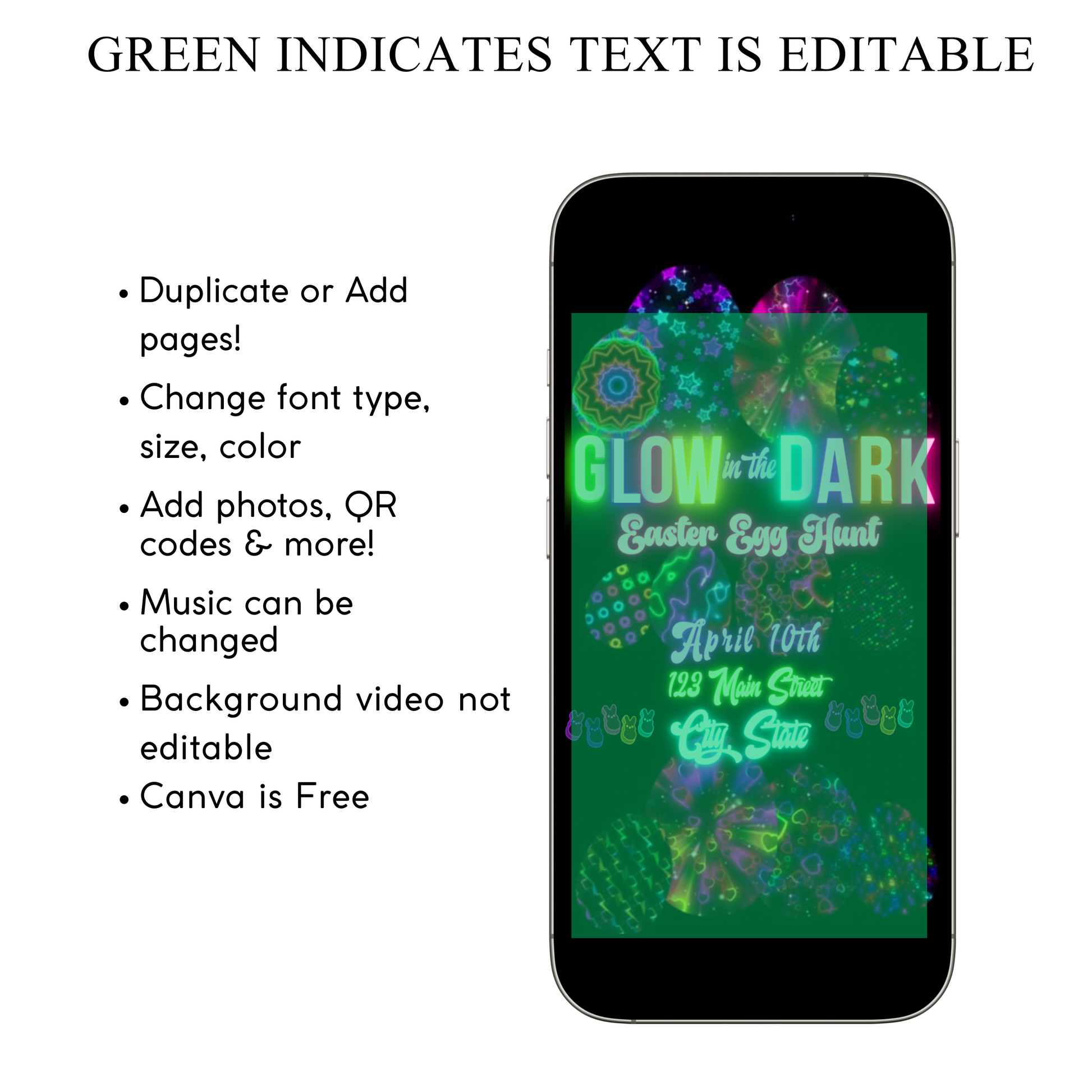 Easter Video Invitation, Neon Easter Egg Hunt Animated Invite, Digital Canva Template