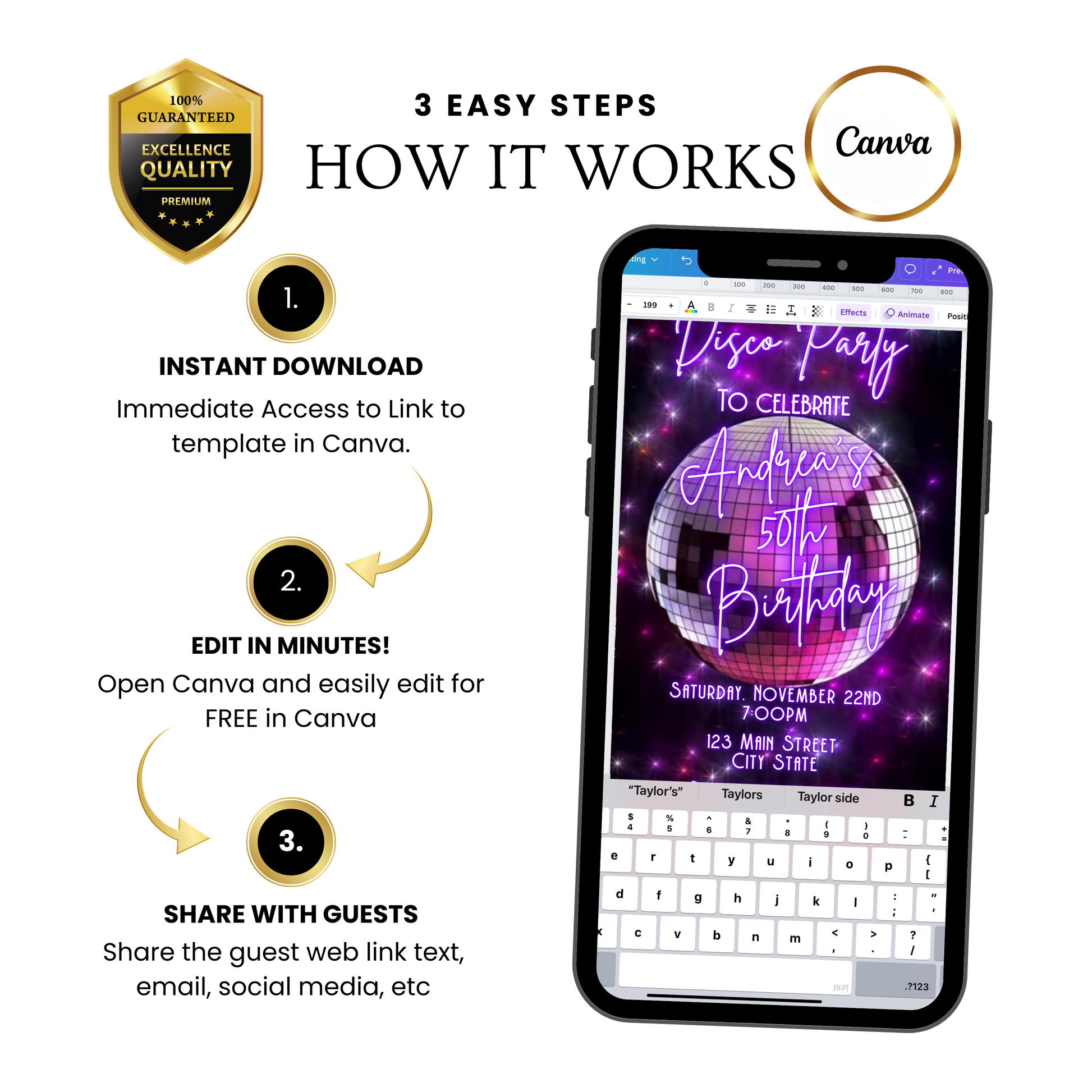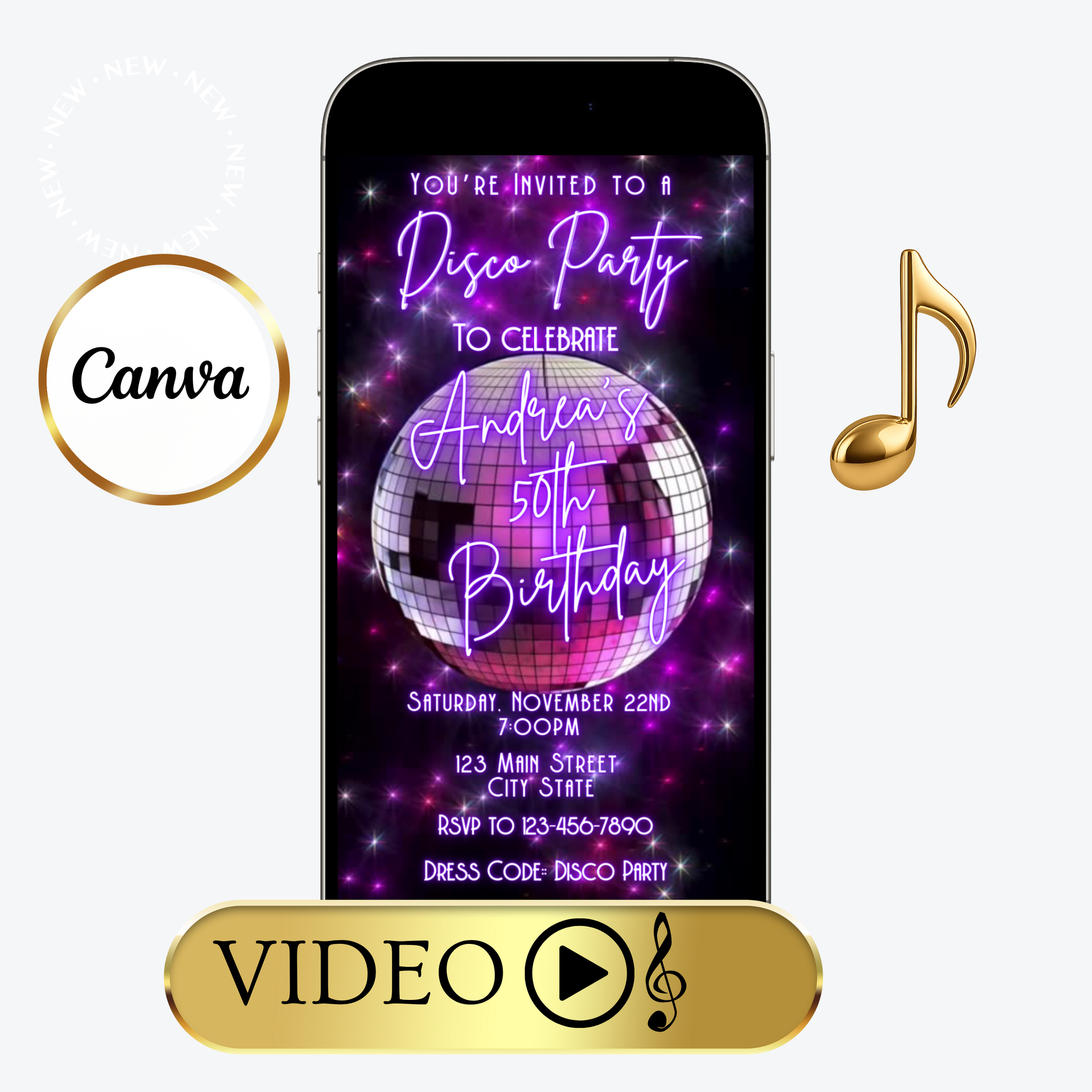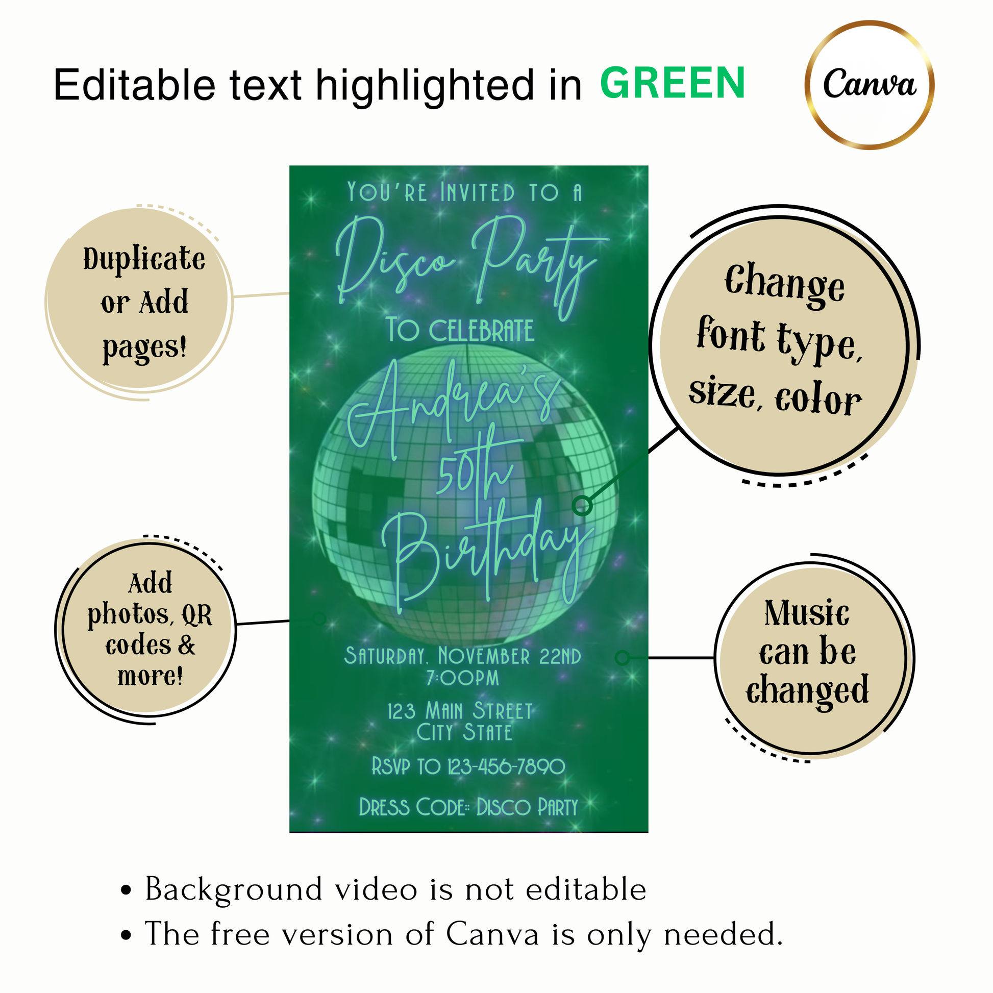 Editable Disco Party Video Invitation | 70s Retro Party Invite | Editable Canva Template Template
